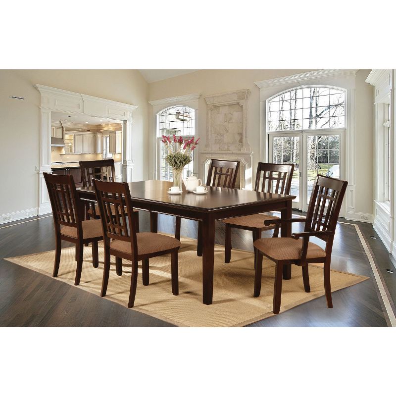 Furniture of America Grantwood 7 Piece Dining Set in Dark Cherry includes 6 chairs and 1 coordinating dinner table. The lightly padded seat cushions are upholstered in soft fabric for your added comfort. Relax against the slightly arched fenced back chairs, complete with perfectly cut out detailing. The smooth rectangular table top includes an optional leaf, expanding the table from 60” up to 78”. The Furniture of America Grantwood 7 Piece Dining Set in Dark Cherry make it perfect for accommodating unexpected guests.