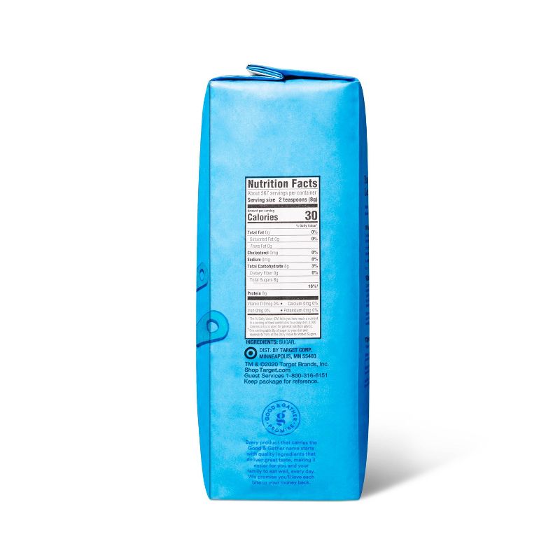 Sweeten your recipes with this Granulated Sugar from Good & Gather™. This tasty granulated sugar is perfect for sweetening your favorite beverages like lemonade or tea, or you can use it in cookie, cake and pie recipes for a delectable treat that will have everyone smiling. You can also use it to sprinkle on donuts for a sweet, crunchy touch. Store this pantry staple in a cool, dry area to ensure freshness at all times. Each bag contains 10 pounds of sugar so you always have plenty on hand. Whether you’re baking for family or friends, this granulated sugar will sweeten any treat.
