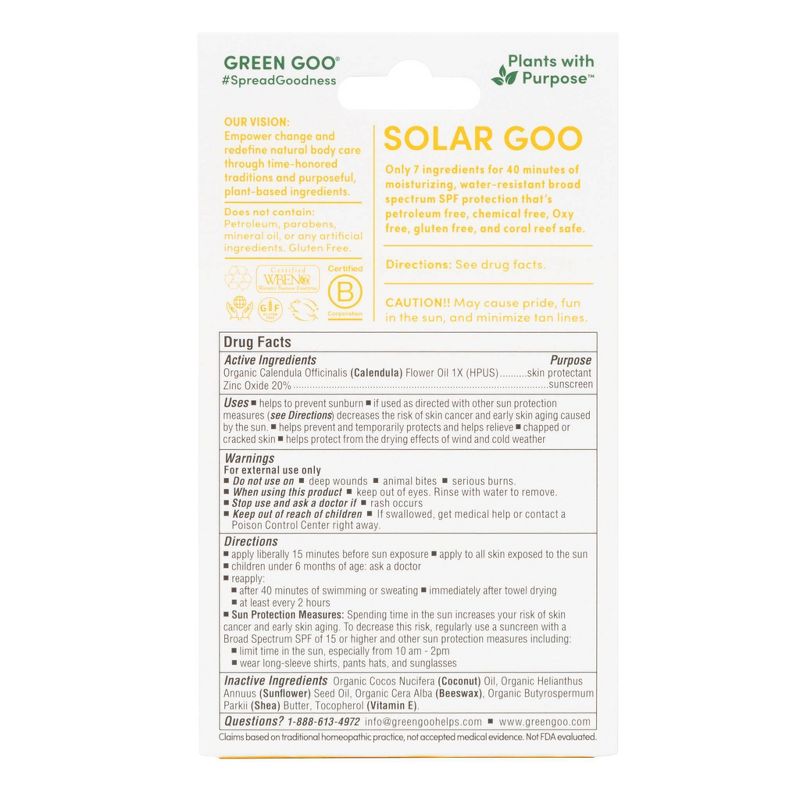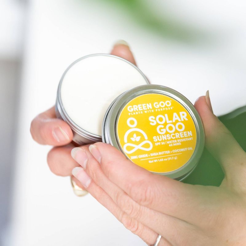 Solar Goo provides 40 minutes of moisturizing, water-resistant, broad-spectrum SPF 30 protection that’s petroleum free, chemical free, oxybenzone free, gluten free, and coral-reef safe -- all with only seven all-natural ingredients.