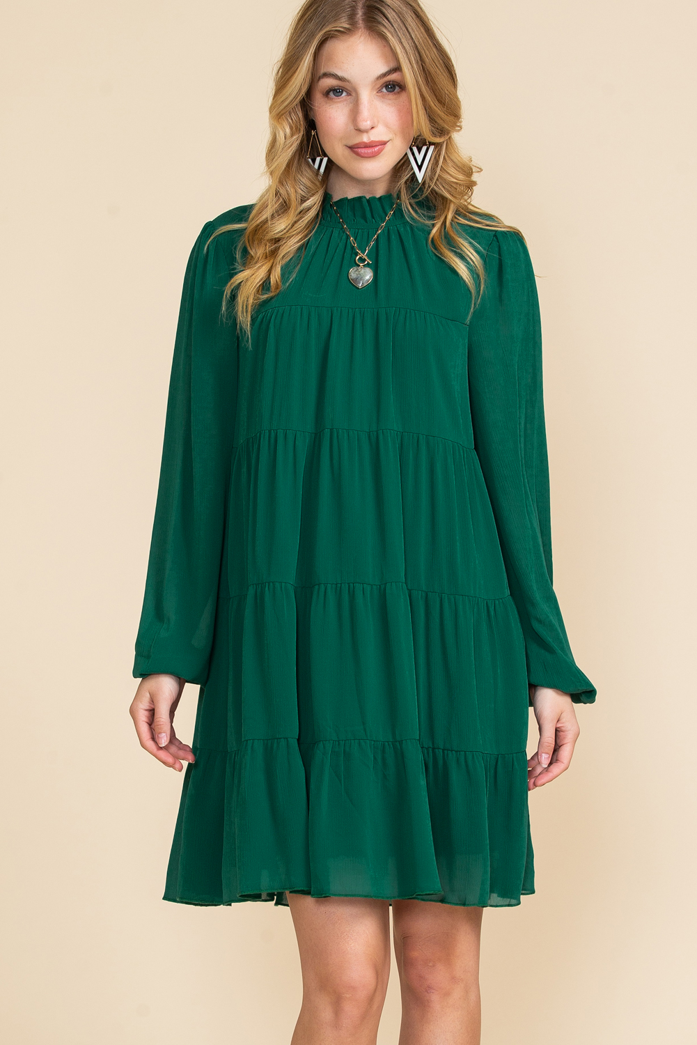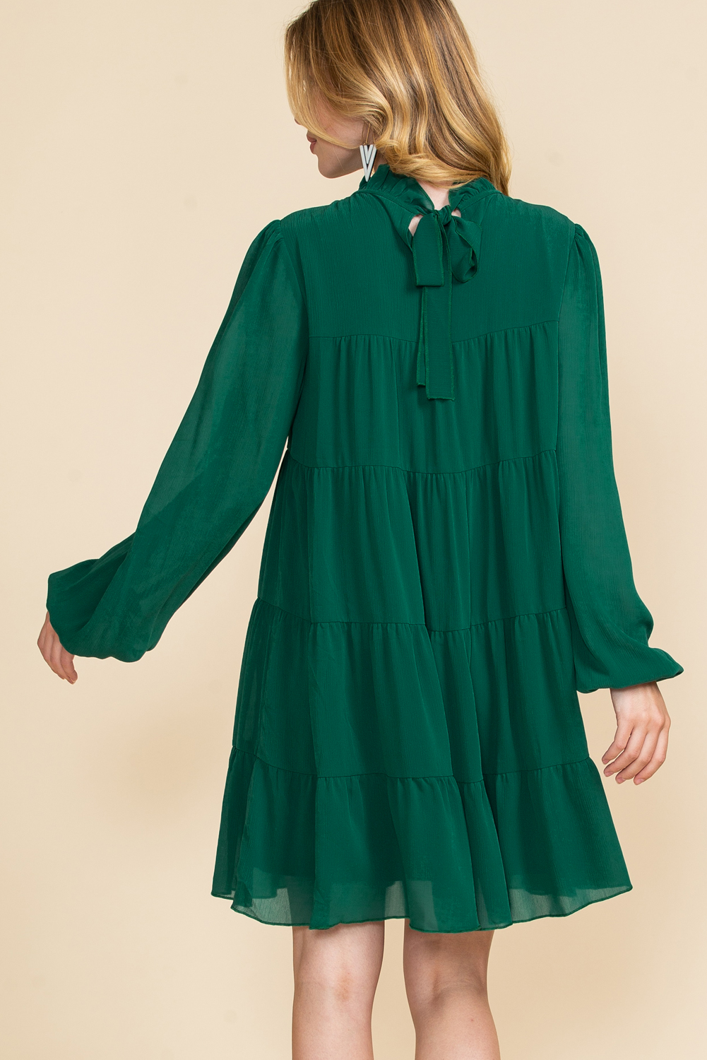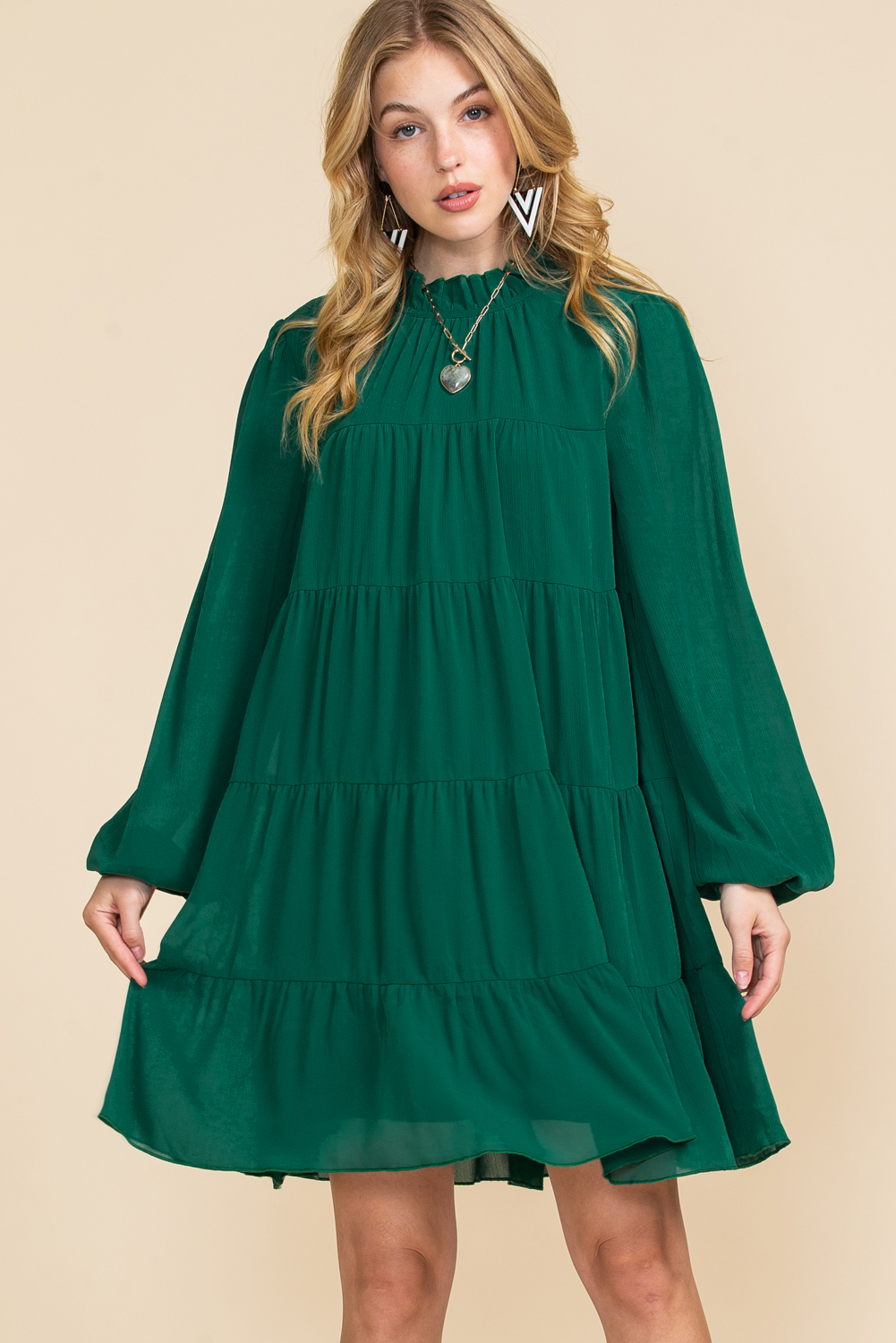 Elevate your style with our Green Mock Neck Solid Color Pleated Mini Dress, a chic and sophisticated option for any occasion.