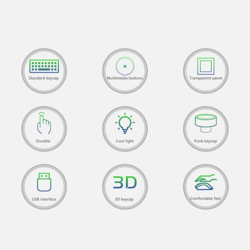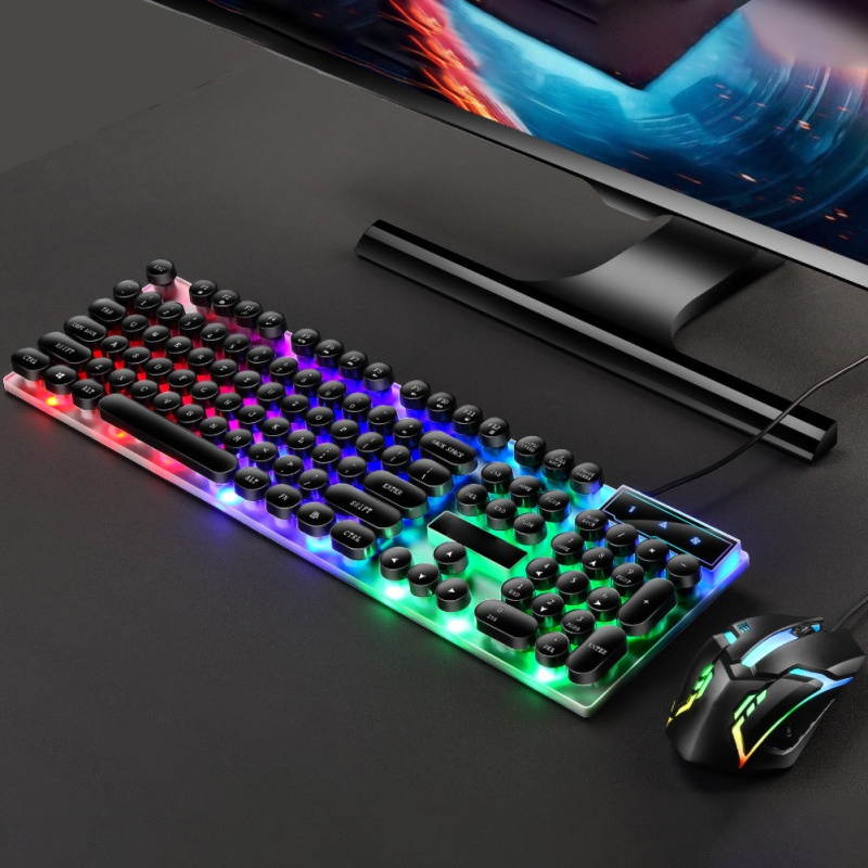 Specifications: This wired keyboard is designed with backlight effect, which is cool. Ergonomic floating buttons bring you excellent handfeel. There is one button for you to turn on or turn off the light effect. The adjustable tripod on the back of keyboard can provide a better experience. A wired mouse is equipped, which is featured with LED light and 3D anti-slip scroll wheels.