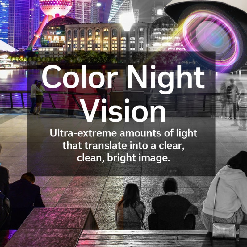 • Full Time Color Night Vision (F 1.0 lens) • 5MP live view at real time, 5MP records at 20fps