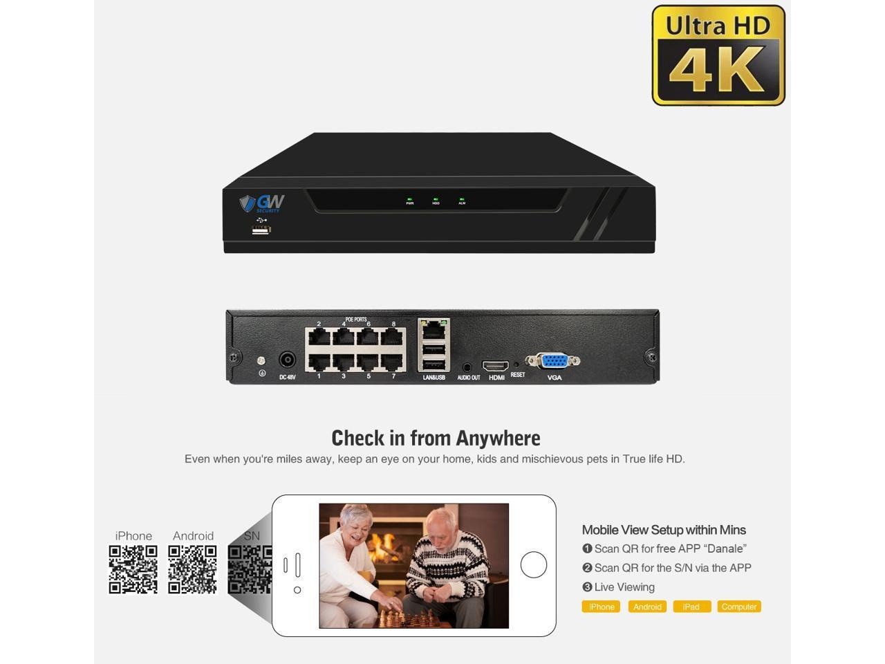 4K (3840x2160) NVR : Support up to 8MP IP cameras |