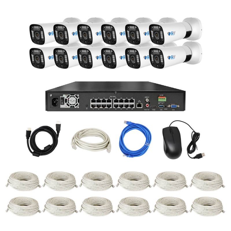 • 8 x 100 feet Ethernet cable for Connecting Cameras to PoE Switch (GWCAT100)