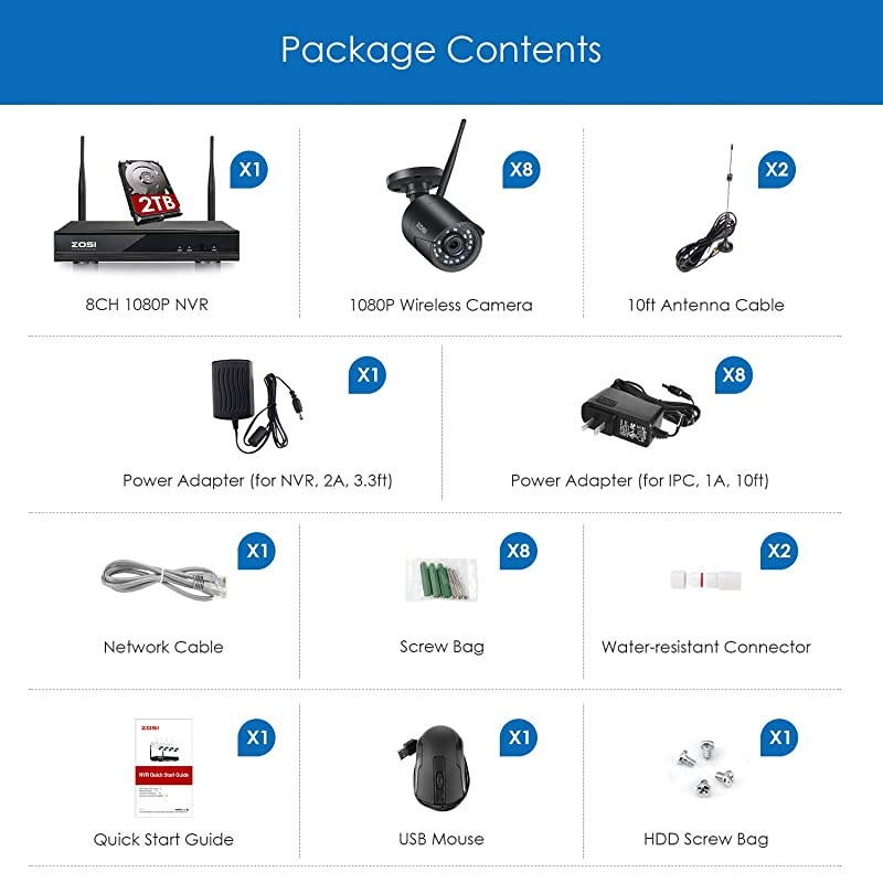 ***** **********Best Quality Guranteed. ***** (1). [ Advanced H. 265+ High Efficiency Video Compression ] __ self-developed H. 265+ video coding technology extract features that focus on characteristics of the surveillance scenes for larger storage space and better image quality. H. 265+ can further improve compression ratio on the basis of H. 265 standard and save about 80% storage compared with H. 264, and thus effectively saving storage resources and provides an excellent and smooth viewing experience. ***** (2). [ 2MP Wireless System Overview ] __ Free from the hassle of long distance wiring, this flexible auto-match wireless home security system provides you with excellent 2MP HD footage, 80ft night vision.