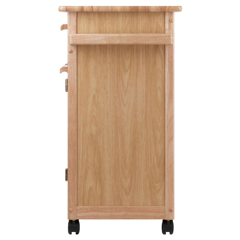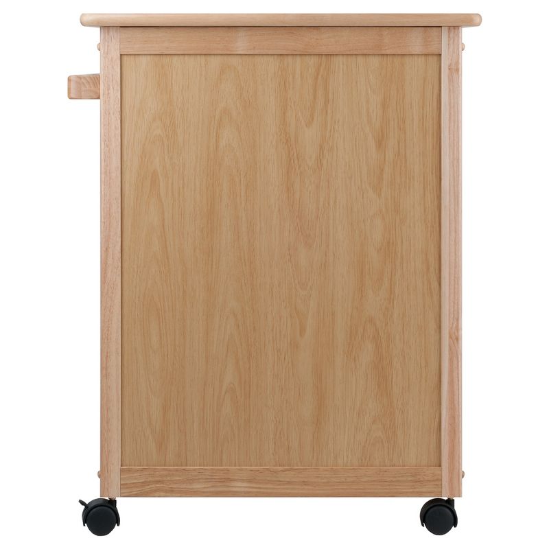 Instantly maximize counter space, storage and style in your kitchen with the Hackett Kitchen Cart from Winsome. This natural wood kitchen cart rolls along on wheels, so you can keep it pushed against a wall when not in use, or pull it out like an island to chop vegetables, assemble dishes or serve up mixed drinks. Underneath storage on this kitchen cart with drawers keeps unused items hidden away to minimize clutter and distraction. The overall size of the cart is 26.9"W x 18.2"D x 34.3"H. The top pull out drawer has dimensions of 19.3"W x 13.1"D x 3.8"H. The doors open to an cabinet with a removable shelf. with the shelf in place, the dimension of the lower portion is 20.5"W x 14.4"D x 14.25"H and upper portion of 20.5"W x 14.4"D x 7.5"H. Made of solid beechwood in natural finish. Assembly required.
