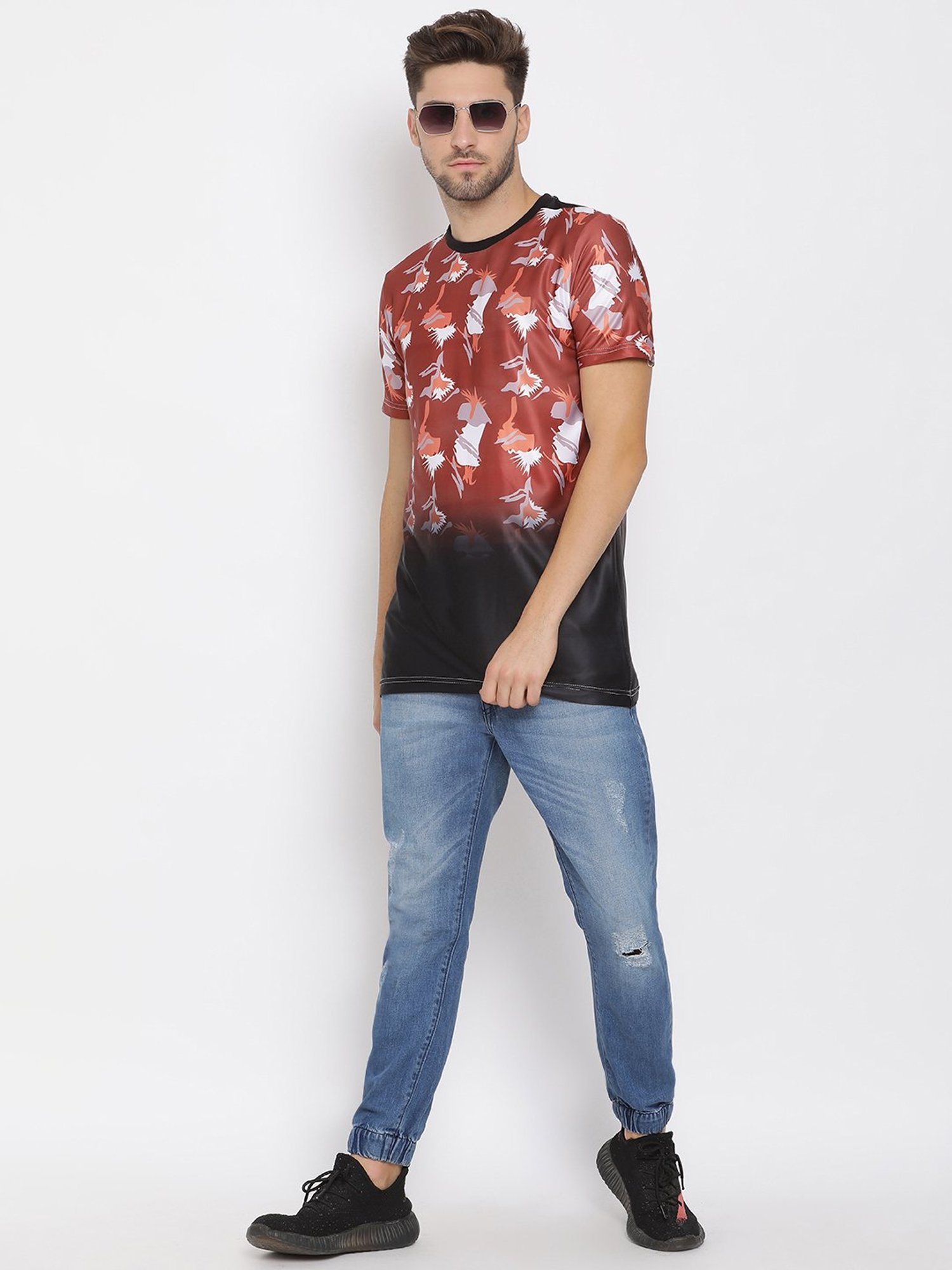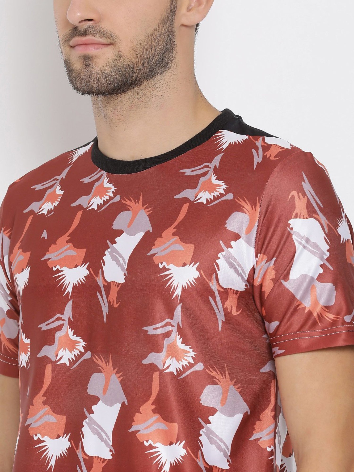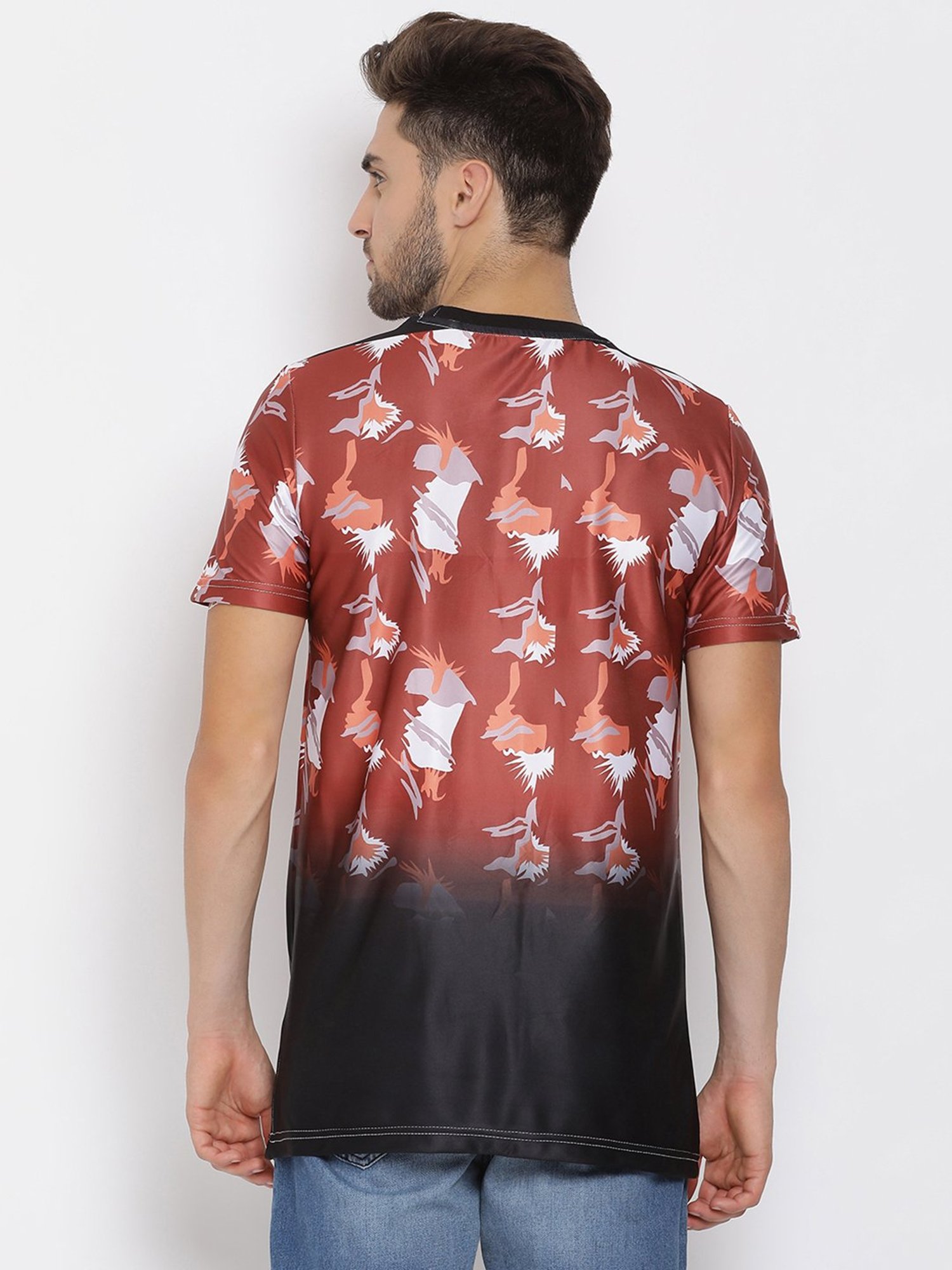 Let your life be a series of stylish celebrations with the warm hues of this cool rust & black crew neck t-shirt from the latest collection of Hangup Plus. Well crafted in premium cotton for a soft hand feel complemented by fine absorption and excellent comfort, it's well designed regular fit silhouette ensures an easy, assured charm. Pair it with denims for a stylish look.