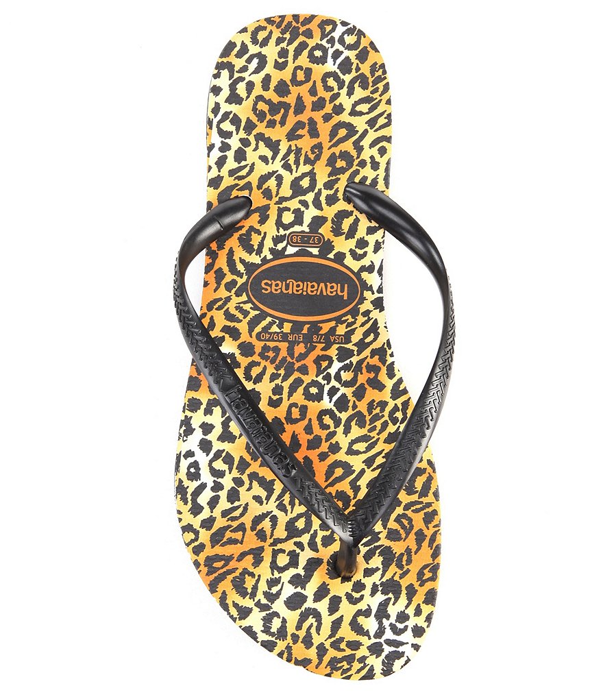 From Havaianas, the Women's Slim Leopard Flip Flops feature: