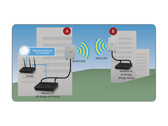 Hawking concurrent Wireless-AC products provide maximum flexibilityfor Wi-Fi networks. Wireless-AC devices can connect to the popular 2.4GHz frequency for compatibility and range and also simultaneouslyoff-load traffic to a faster, less-crowded 5GHz AC frequency for speed. The users can simply pick the network of choice. The HOA12DP strengthens and extends the Wireless-AC signal for long range, high traffic wireless networks.