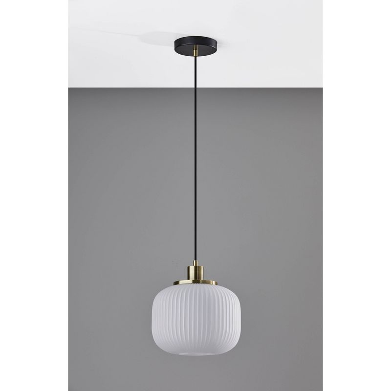 Add a classy touch of mid-century design to your space with the Hazel Pendant. A frosted ribbed glass shade emits a beautiful ambient glow when lit. Stagger multiple over a dining space for s statement making ceiling display or hang in a row over a kitchen counter to liven up the cooking area. Antique brass accents and a black fabric cord add to the clean, modern design. All Adesso lighting product is either UL or ETL listed, meaning that it has been tested and approved to meet the government-regulated safety standards for the USA.