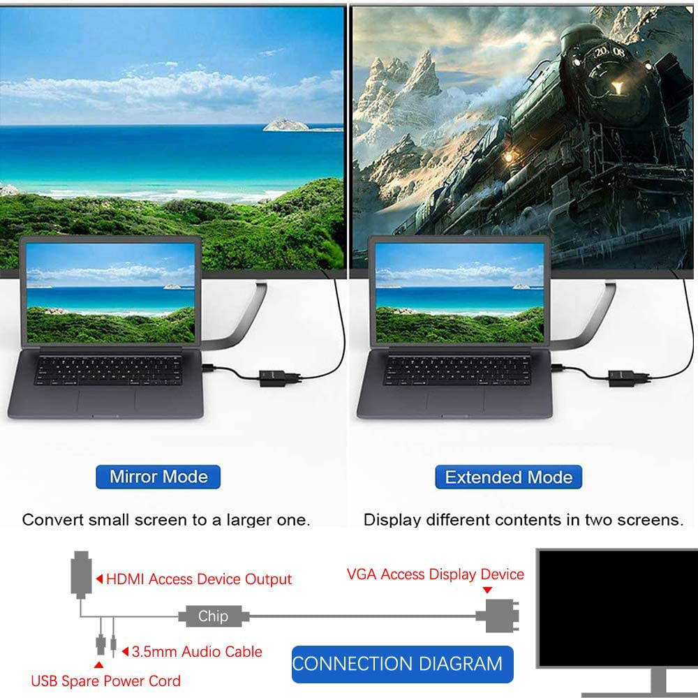 Features: Supports resolutions upto 1080P (1080p Full HD) including 480P/ 576P / 720P for HD monitors or projectors Suitable for all HDMI input and VGA output interface devices Built-in conversion chip improves the compatibility Plug and Play design, without special setup