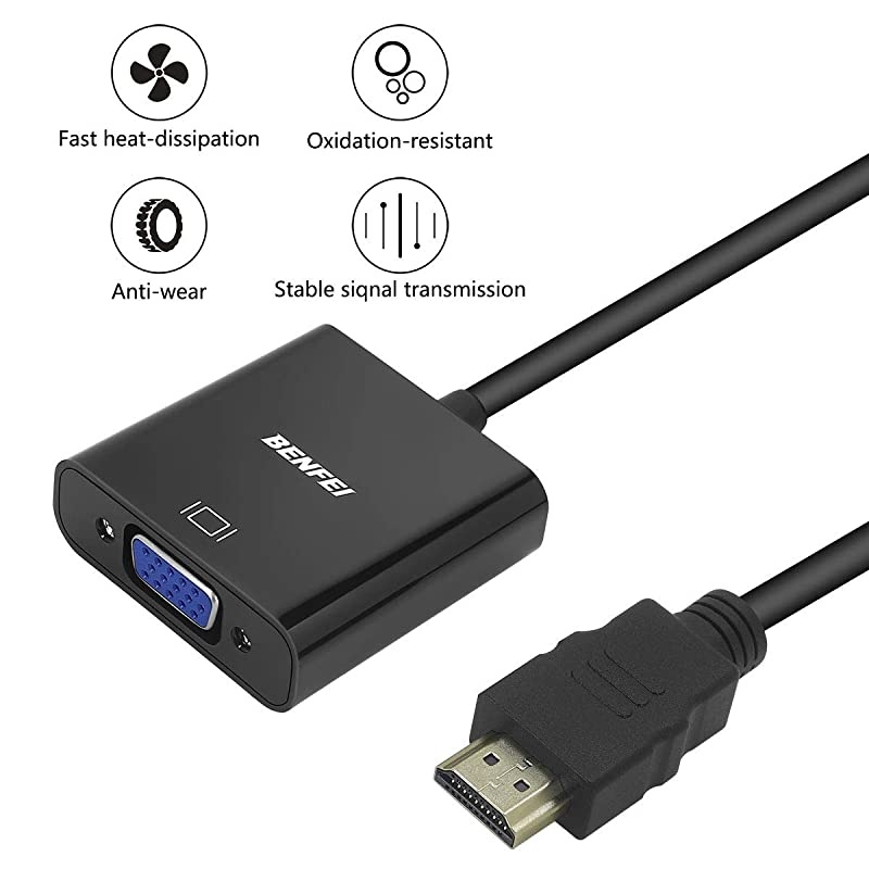 ***** Best Quality Guranteed. *****COMPACT DESIGN - The compact-designed portable HDMI to VGA adapter connects a computer, desktop, laptop, or other devices with HDMI port to a monitor, projector, HDTV, or other devices with VGA port; Tuck this lightweight gadget into your bag or pocket to do a business presentation with your laptop and projector, or extend your desktop screen to a monitor or TV; A VGA cable is required. *****SUPERIOR STABILITY - Built-in advanced IC chip converts HDMI digital signal to VGA analog signal; It is NOT a bi-directional converter and cannot transmit signals from VGA to HDMI *****INCREDIBLE PERFORMANCE - The HDMI male to VGA female converter supports resolutions up to 1920x1080@60Hz (1080p Full HD) including 720p, 1600x1200, 1280x1024 for high definition monitors or projectors; Gold plated HDMI connector resists corrosion and abrasion and improve the signal transmission performance; Molded strain relief increases cable durability *****BROAD COMPAT