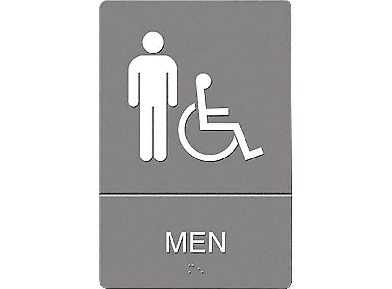 Universally and easily recognizable white graphics. Raised tactile graphics with grade 2 braille. Meets Americans with Disabilities Act (ADA) requirements. Includes double-side adhesive tape for mounting to door or wall. Easy-to-see white graphic. Raised tactile graphics with grade 2 Braille. Meets Americans with Disabilities Act (ADA) requirements. Sold as 1 Each.