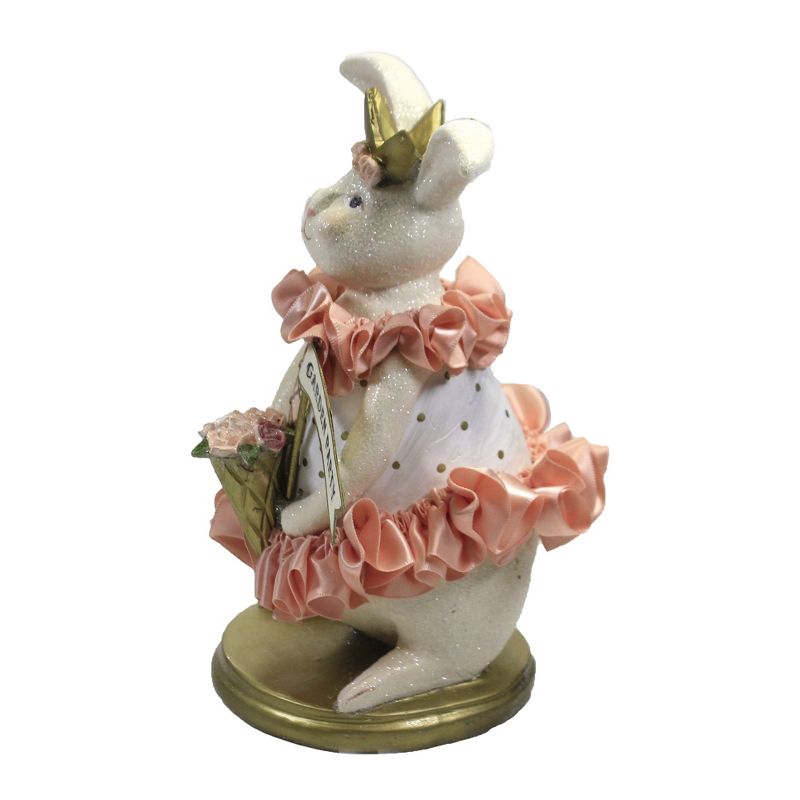 "Beatrice " Is A Bunny Dressed In A White With Gold Polka Dots Dress With A Lace-Up Center And Accented With A Gathered Satin Peachy Pink Skirt And Collar.. New. Comes Packaged In A Box.. Measurements 7.25 In H X 4.25 In W X 4.5 In D. . Made Of Polyresin. No Assembly Required. Indoor Use Only. Imported