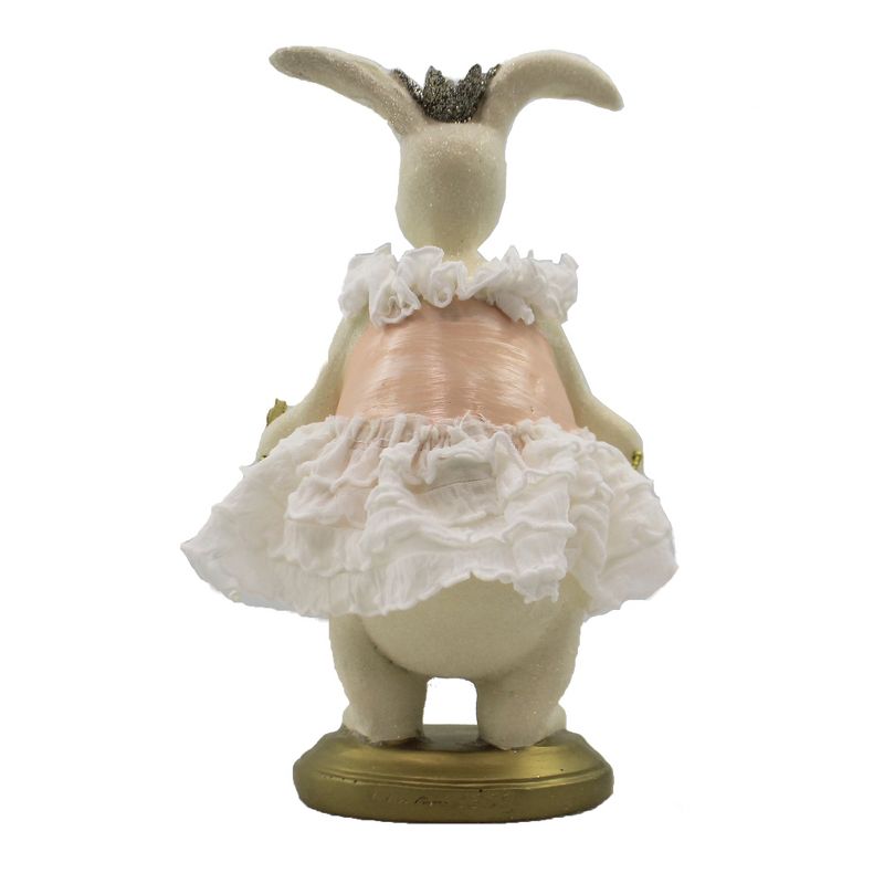 This Slightly Glittered Cream Bunny Wearing A Outfit With Peachy Pink Lace-Up Bodice Accented With Gold Lace-Ups. The Ruffled Collar Is White Matching The Four Tiered White Ruffled Skirt. A Silver Crown With Gold Accent Hearts Tops Her Head.. New. Comes Packaged In A Box.. Measurements 9.0 In H X 5.0 In W X 4.25 In D. . Made Of Polyresin. No Assembly Required. Indoor Use Only. Imported