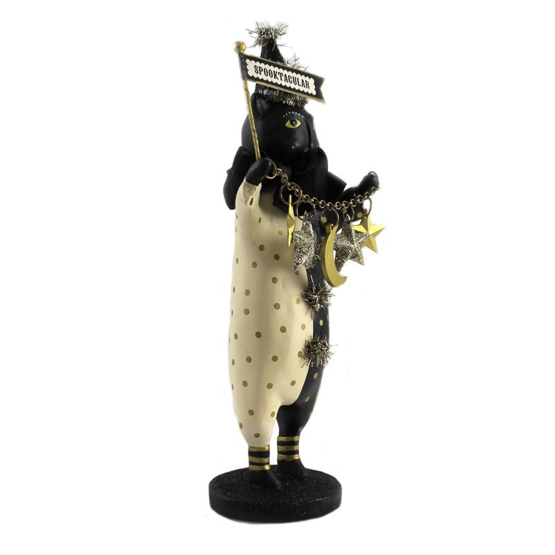 Halloween Is Coming And She Is Dressed For The Halloween Party! Her Black Outfit Is Accented With Silver Pom Poms Down The Front Along With A Black Gathered Collar. A Black Party Hat With Silver Tinsel Completes The Outfit.. New. Comes Packaged In A Box.. Measurements 9.5 In H X 3.5 In W X 2.75 In D. . Made Of Polyresin. No Assembly Required. Indoor Use Only. Imported