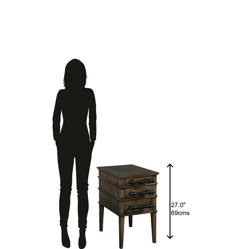 Oak veneers and select solids. Three drawers. Antique brass hardware. Special Reserve finish. Width 14" (36 cm) Depth 21" (53 cm) Height 27" (69 cm)