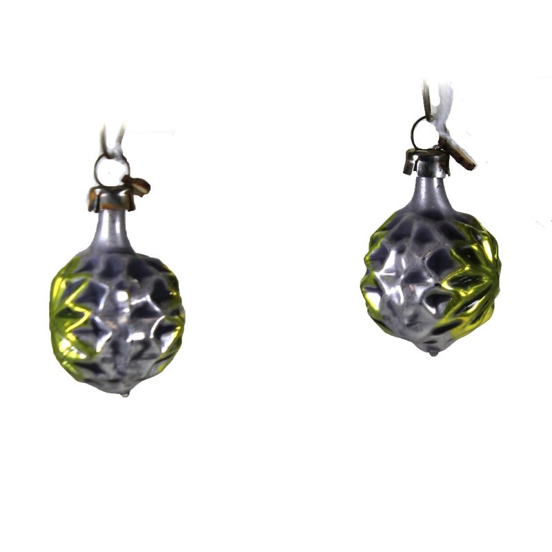 Vintage Silver Ornaments Accented In Green. The Ornaments Are A Ball With A Green Star In The Middle.. New. Measurements 1.25 In H X 1 In W X .75 In D. . Made Of Glass. No Assembly Required. Indoor Use Only. Imported. NOTE: Not A Toy, For Decorative Use Only.