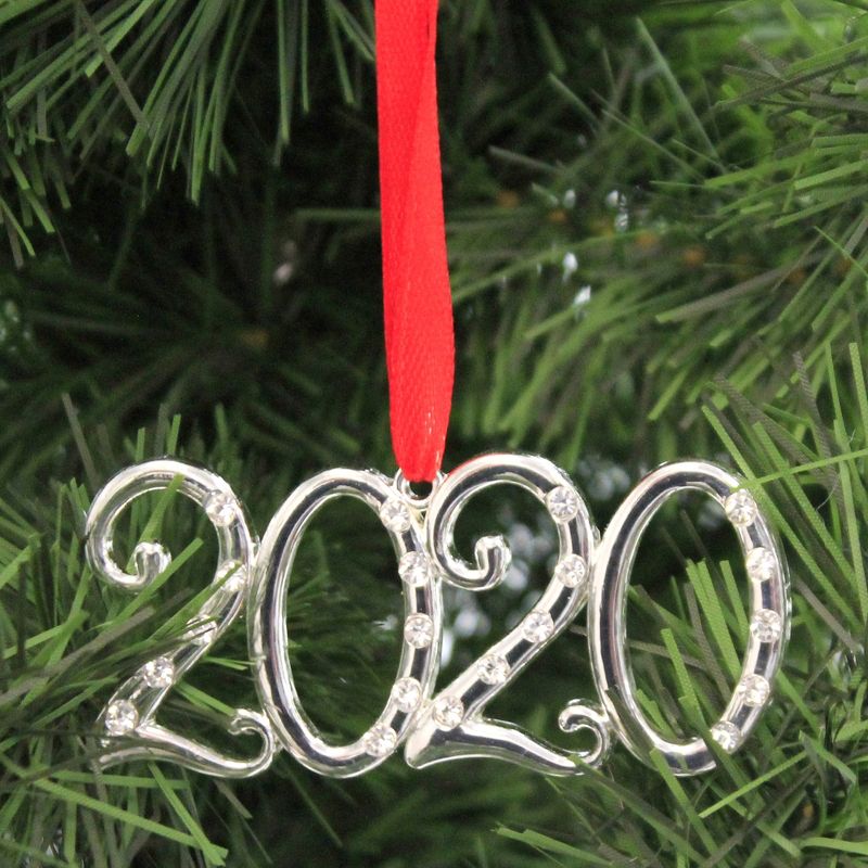 Shiny Silver Color Ornament Made Of The Numbers 2020. Each Number Contains Five Clear Stones Accenting The Right Curve Of Each Number.. New With Box. Measurements 1.25 In H X 2.75 In W X .12 In D. . Made Of Metal. No Assembly Required. Indoor Use Only. Imported