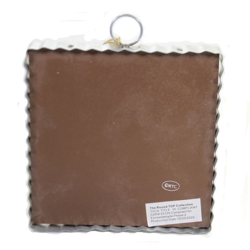• Plaque Is Surrounded With A Wavy Silver Metal Frame With A Round Loop For Hanging. Also Can Be Used Free Standing