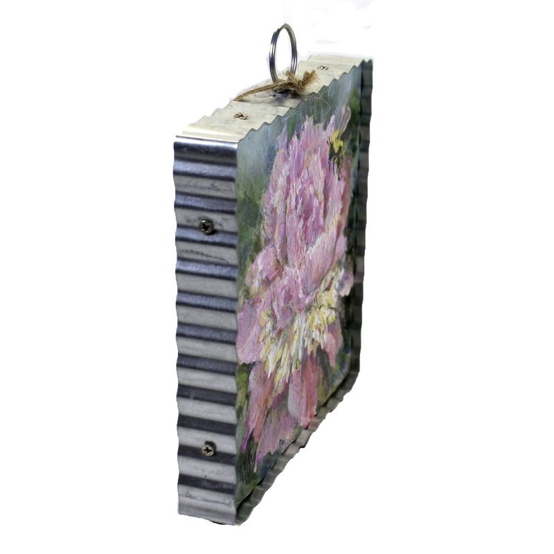 Lovely Purple Peony On A Green Water Color Background. Bee In The Upper Right Corner Of The Flower.. New. Measurements 7 In H X 6 In W X 1 In D. . Made Of Wood & Metal. No Assembly Required. Indoor Use Only. Imported. NOTE: Not A Toy, For Decorative Use Only.
