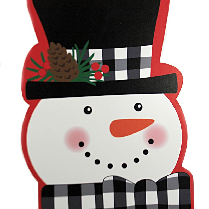 Our Hang Arounds Are Just Exactly What You Need To Dress Up That Front Door. Rosy Cheek Snowman With A Carrot Nose Wears A Black Top Hat With Black And White Checked Band Accented With A Pine Cone, Greenery And Berries. Matching Black And White Checked Scarf With Bow At At His Neck. Snowman Is Outlined In Red.. New. Measurements 17.5 In H X 11.5 In W X .25 In D. . Made Of Pvc. No Assembly Required. Indoor Or Outdoor Covered Use. Made In Usa
