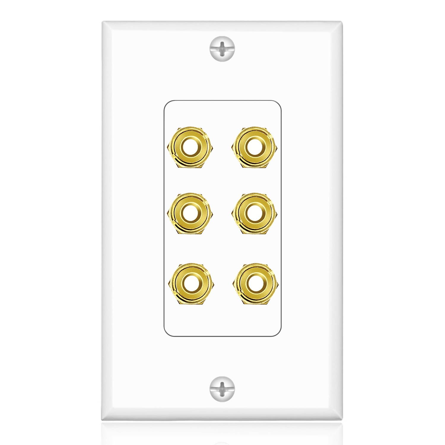 - 1x Home Theater Speaker Wall Plate Outlet - 3 Speaker Sound Audio Distribution Panel Gold Plated Copper Banana Binding Post Plug Connector Insert Jack Coupler (3 Pair, Single Gang, White)
