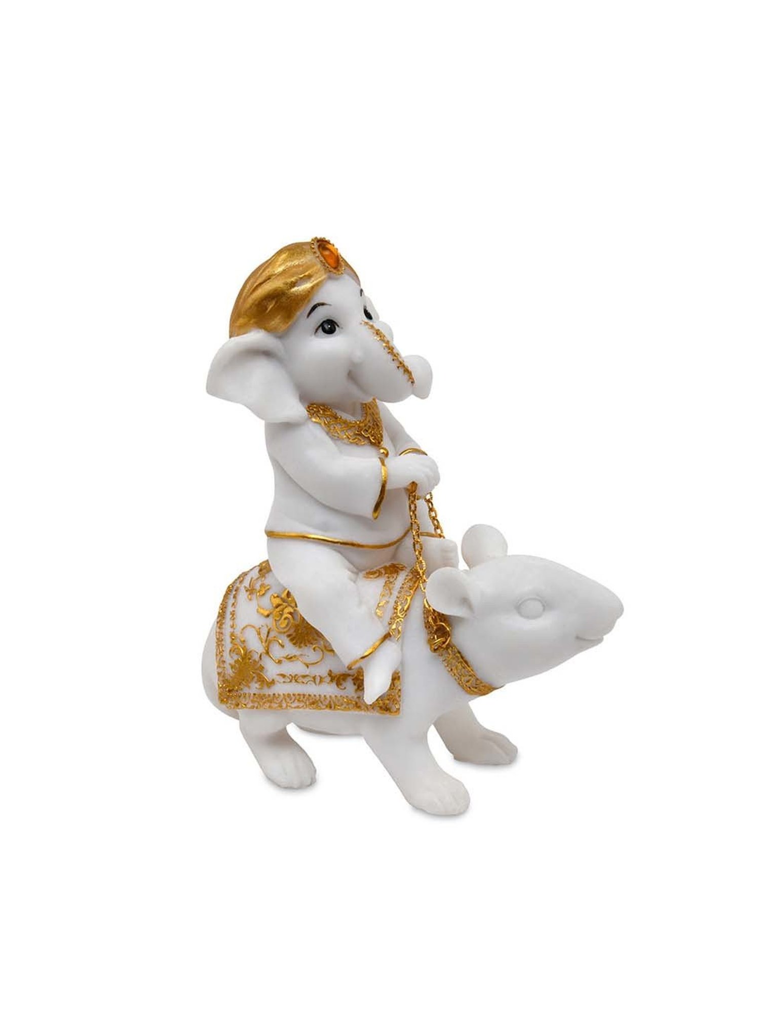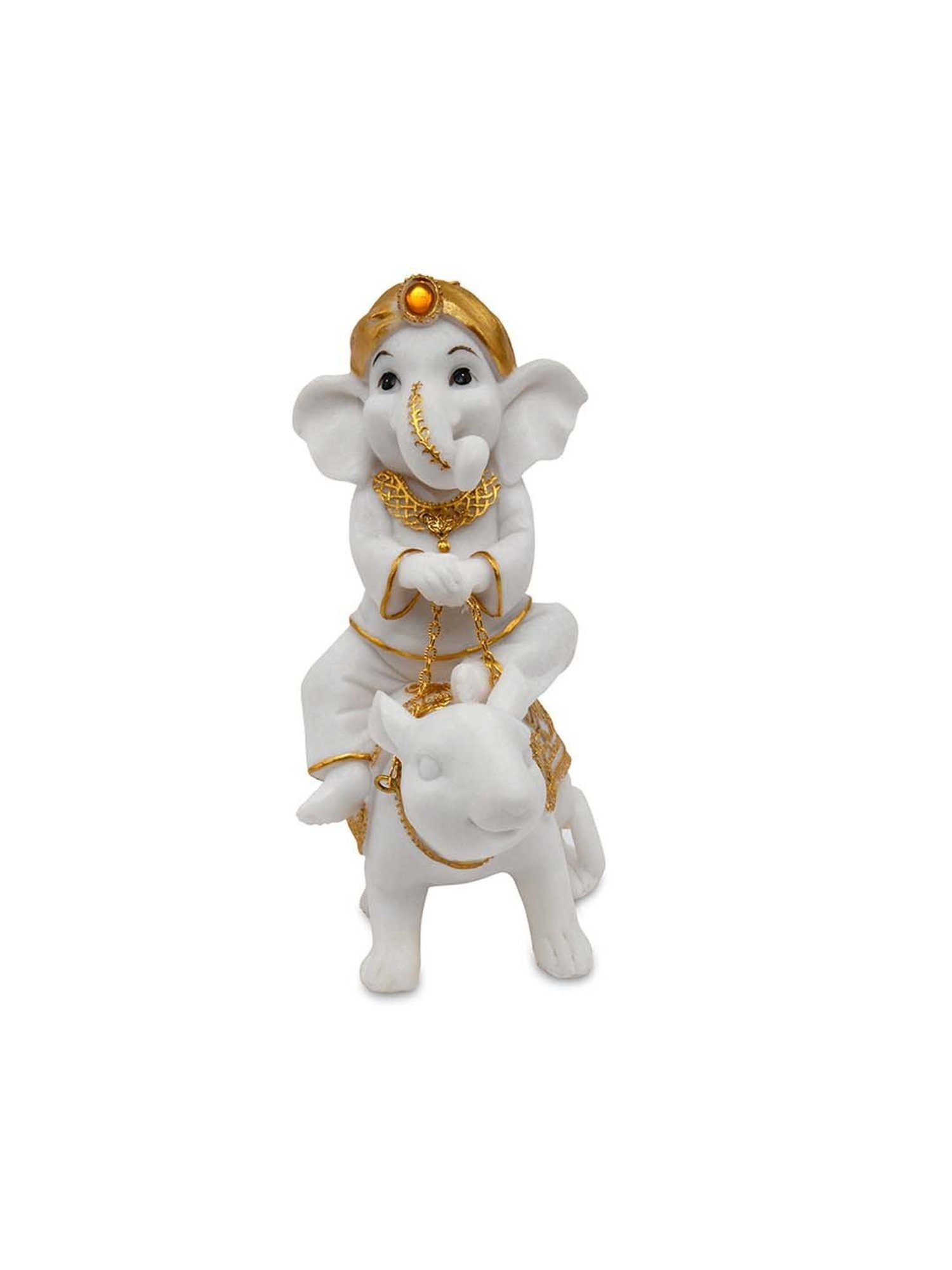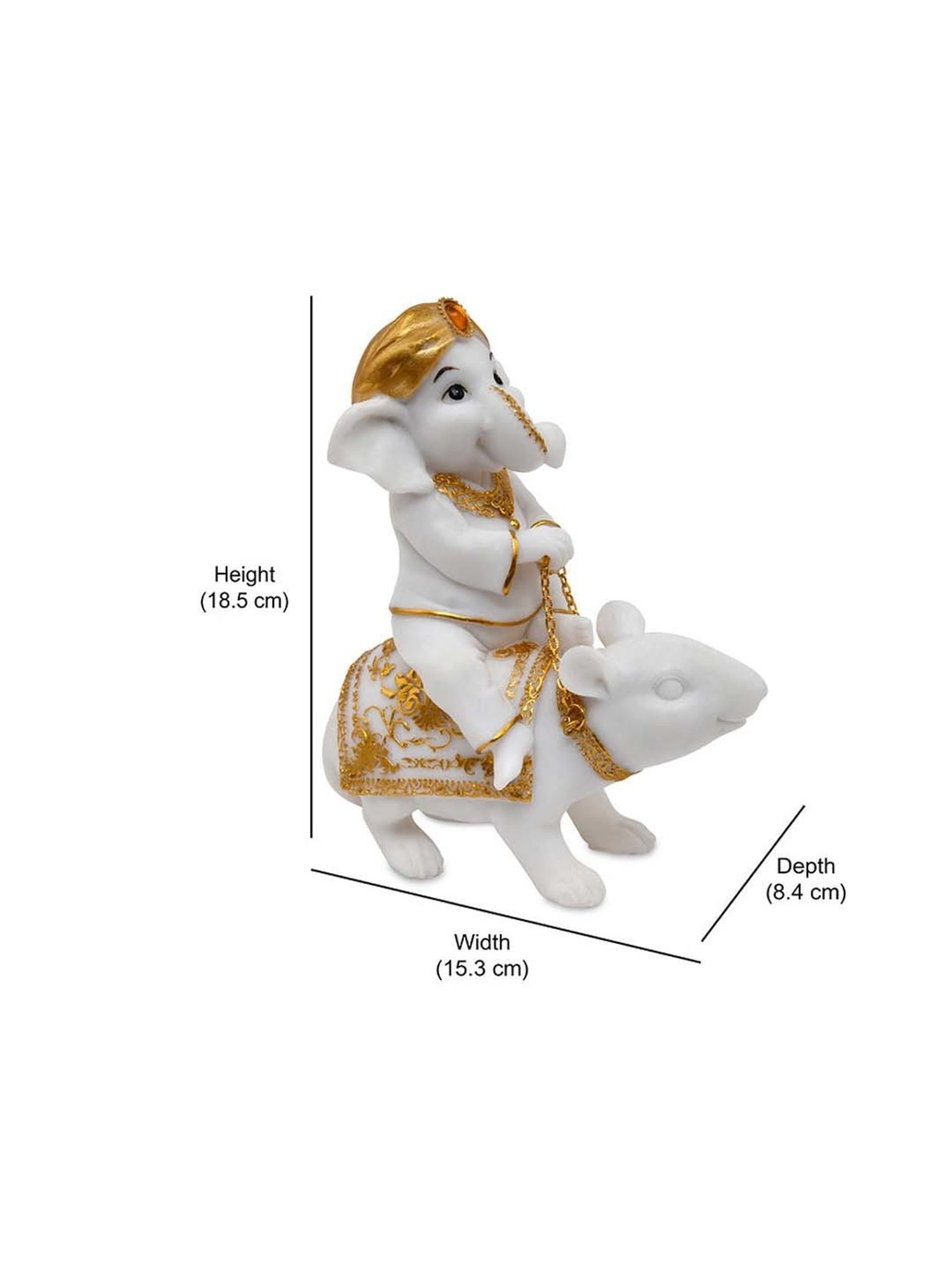 This set of 1 Ganesha on mouse showpiece idol from @Home gracefully beautifies your home decor. Crafted from luxurious resin, it offers eye-catching style and easy maintenance, ensuring both style and convenience. Elevate your living space with this exquisite addition, designed to bring sophistication and relaxation to any room.