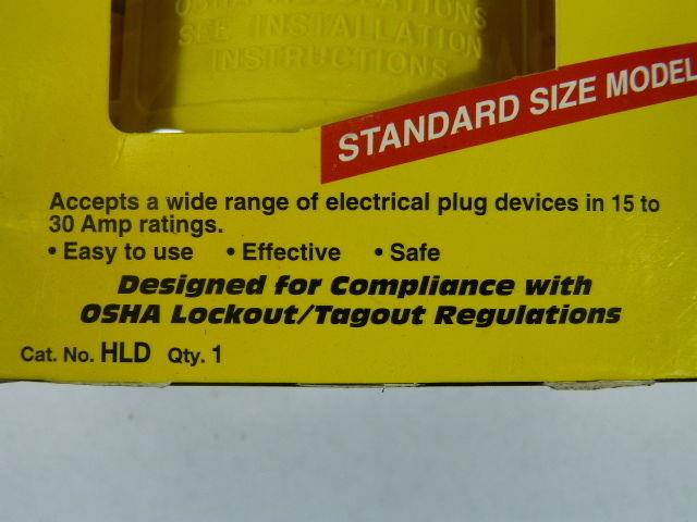 Plug Lockout, Yellow, Padlock Shackle Max. Dia. 3/8 in, Max. Number of Padlocks 4, Fits Up to 5W 30A Twist-Lock Plugs, Height 8 1/16 in, Length 4 17/64 in, Max. Cord Dia. 1 1/8 in, Material Polypropylene, Voltage 20/30A. This item has been restricted from sale in the following state (s): []