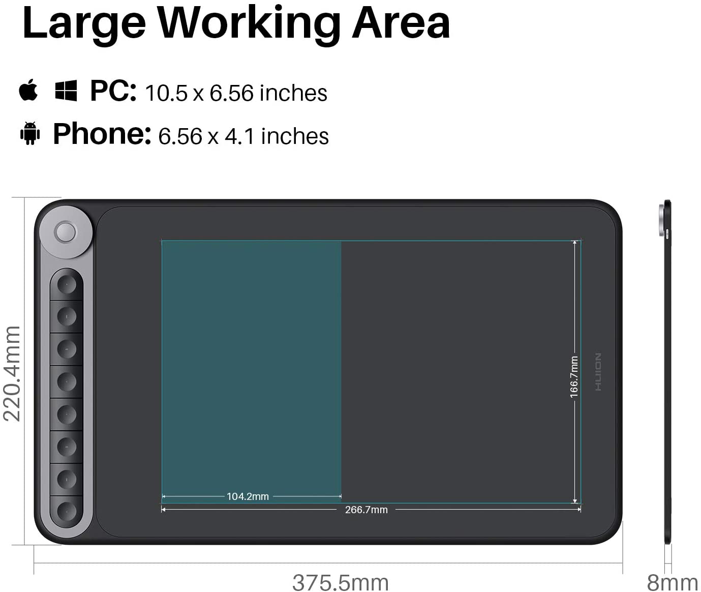 Q620M Graphics Drawing tablet comes with 10.5 x 6.5 inches large working area. Anti-Slip Design on the back can prevent the tablet from dropping easily down when you focus on drawing.