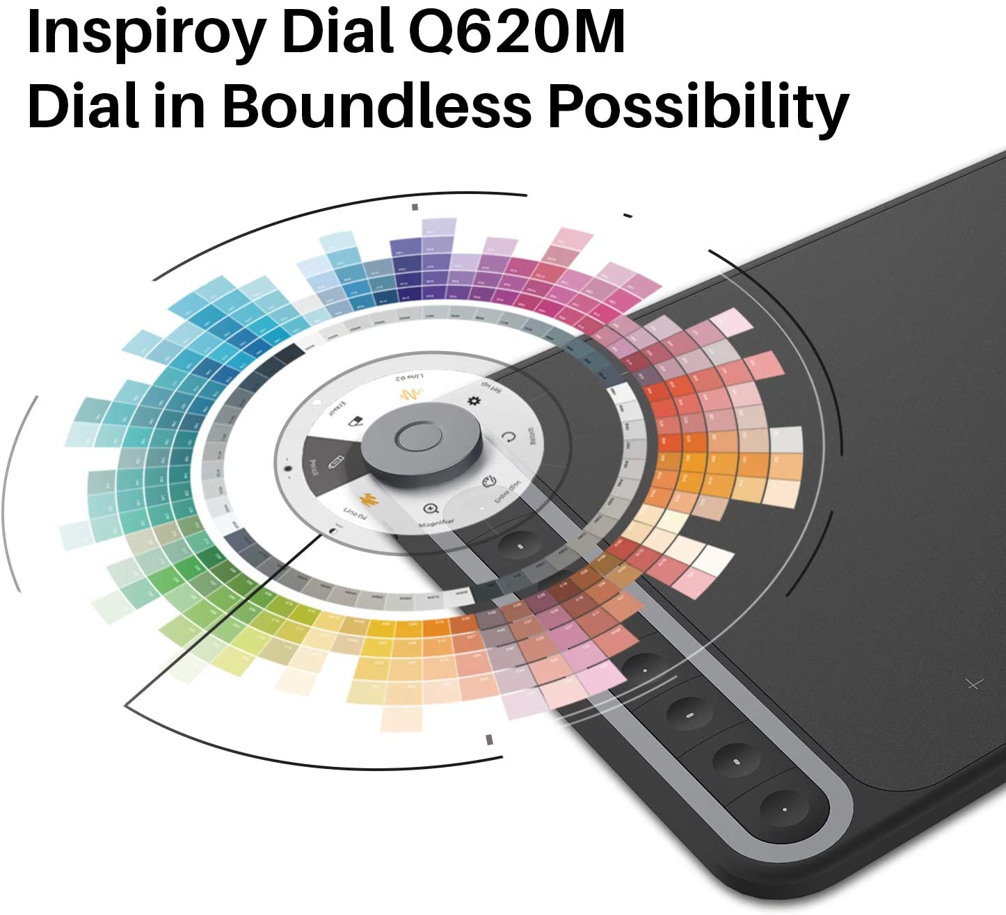 Radial Controller Protocol is supported with or without the Driver installed in Q620M graphics drawing tablet. Page Scrolling,Zoom in/out,change the brush. You can also customize it to your preference.