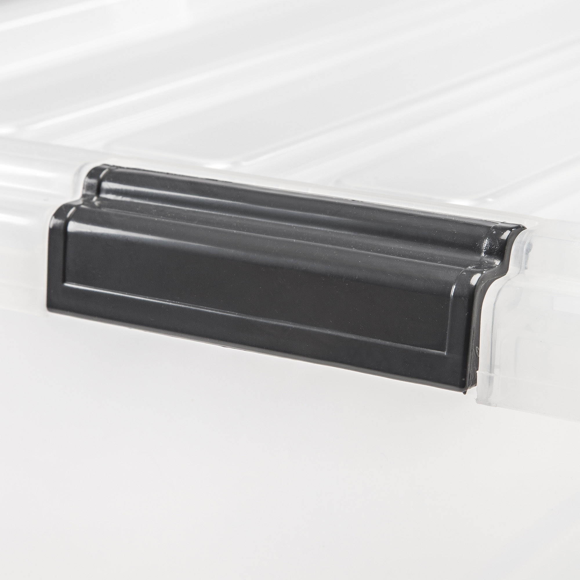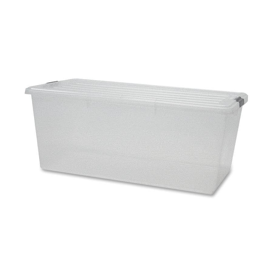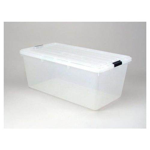 Our 91 Quart Buckle Down Box will keep any room in your home organized. Quickly identify contents with clear lid and body. Stack multiple units to maximize storage space in a closet, basement, or garage. Use to store blankets, toys, gardening supplies, and more. See other items in this series: 37 QT, 44 QT, 68 QT, 132 QT.