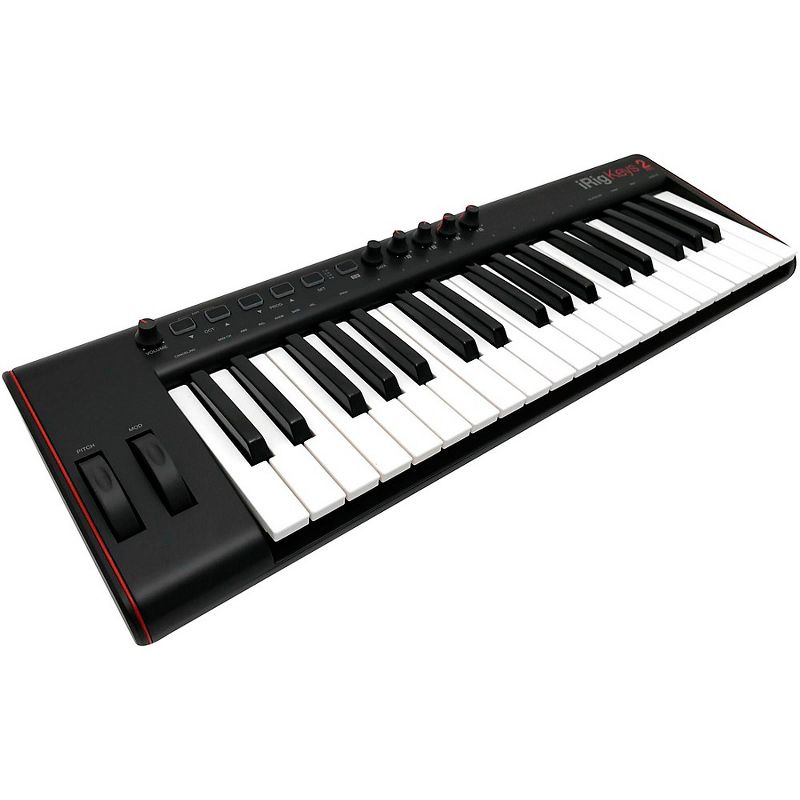 iRig Keys 2 Pro is a 37-key (3 octave) MIDI keyboard controller with full-sized, velocity-sensitive keys that connects to all of devices: iPhone, iPad, Android and Mac/PC. It combines playability and portability for a controller equally at home in the studio or on the go.Be heardNever worry about compatibility issues again. iRig Keys 2 Pro works right out of the box with iPhone, iPad, Mac, PC, as well as most Android devices*, even the latest models. A new headphone output lets connect speakers or headphones, so ’re never stuck using device’s built-in speakers.  Control moreiRig Keys 2 Pro adds MIDI input and output so can control stand-alone gear like UNO Synth and other analog synthesizers, UNO Drum and other drum machines, and more. can run iRig Keys 2 Pro off computer or mobile device, USB power supply or even USB battery packs, so it’s perfect for on-the-go rigs.Limitless potentialiRig Keys 2 Pro works with hundreds of popular music apps for iPhone, iPad, Android and Mac/PC.  Its improved keybed is perfect for learning to play or practicing with today's hottest lapps, but equally at home creating compositions or beats with professional software.Convenient controliRig Keys 2 Pro hosts a number of useful controls – from modulation and pitch bend wheels, a volume output control, octave up/down buttons, program up/down buttons, a set button, an ALT button, and a data push encoder.An Edit mode lets transpose the keyboard, customize touch sensitivity, change MIDI channel, customize knob assignments and more – and then save these into Sets using the Set button to recall them in a snap.Where to next?iRig Keys 2 is designed for portability, so it can travel anywhere do. It runs off device, a USB wall charger or battery pack, meaning there’s no bounds to creativity. Enjoy real, playable feel from a compact device that fits in luggage, turning the world into studio.Cutting-edge software bundleiRig Keys 2 Pro includes IK’s award-winning Mac/PC sound & groove workstation, SampleTank 4 SE, giving over 2000 sounds to create cutting-edge tracks right out of the box. It also includes SampleTank FREE for iPhone iPad, iGrand Piano FREE for iPhone, iPad and Android, and iLectric Piano FREE for Android.iRig Keys 2 Pro gives studio-quality feel can take anywhere.*Requires micro-USB to OTG or micro-USB to USB-C cables, sold separately.
