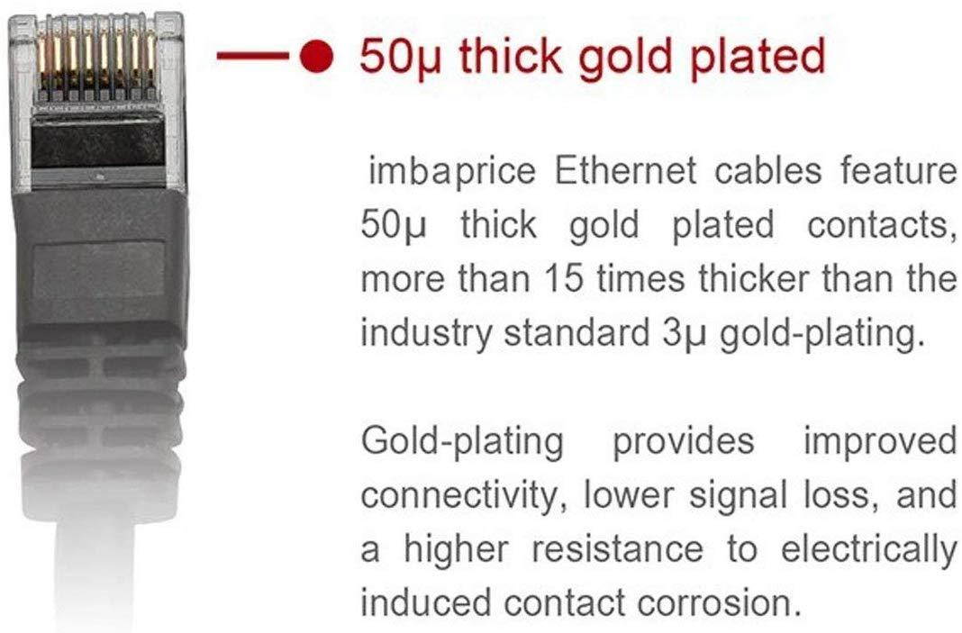 Cat6 Patch Cable, Molded, 24AWG, 50u, 7ft Black. Connect ethernet devices in your home or office with iMBA's High Speed Cat6 ethernet network cable. A snagless molded strain relief protects your devices during installation and gold plated contacts ensure you're getting clear data transmissions for your computing needs. Network your home or office with this high-efficient and affordable Cat6 ethernet network cables.