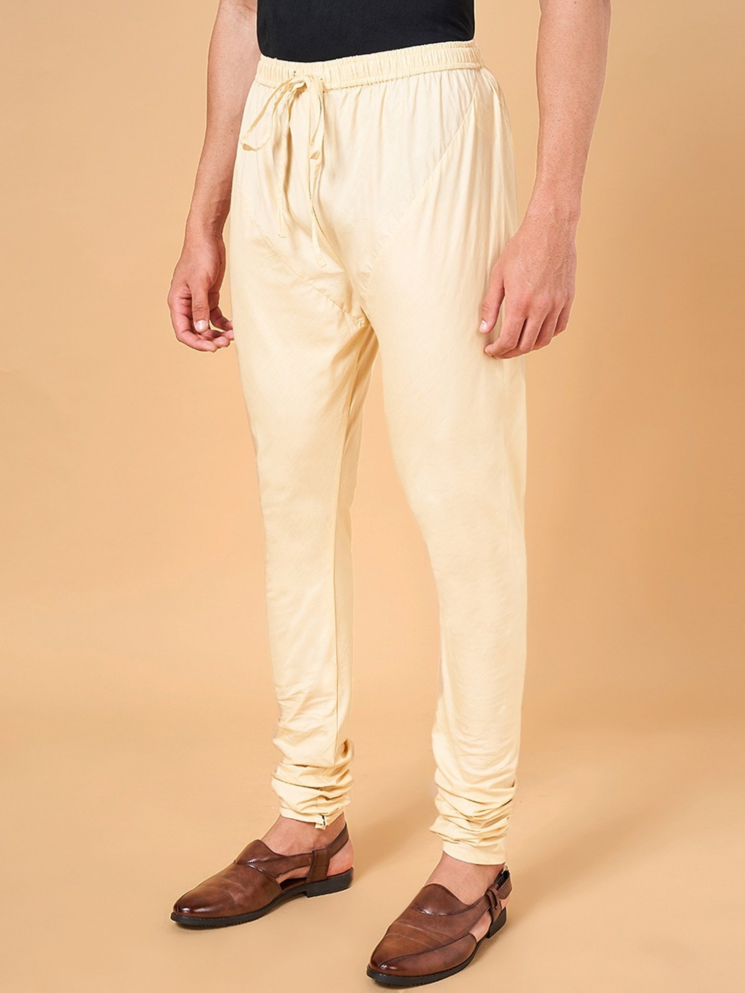 Inspire chic finesse in your line-up with this pair of beige regular fit churidars from Indus Route by Pantaloons. Tailored to sartorial perfection from premium quality fabric, it assures a soft and soothing touch against the skin.