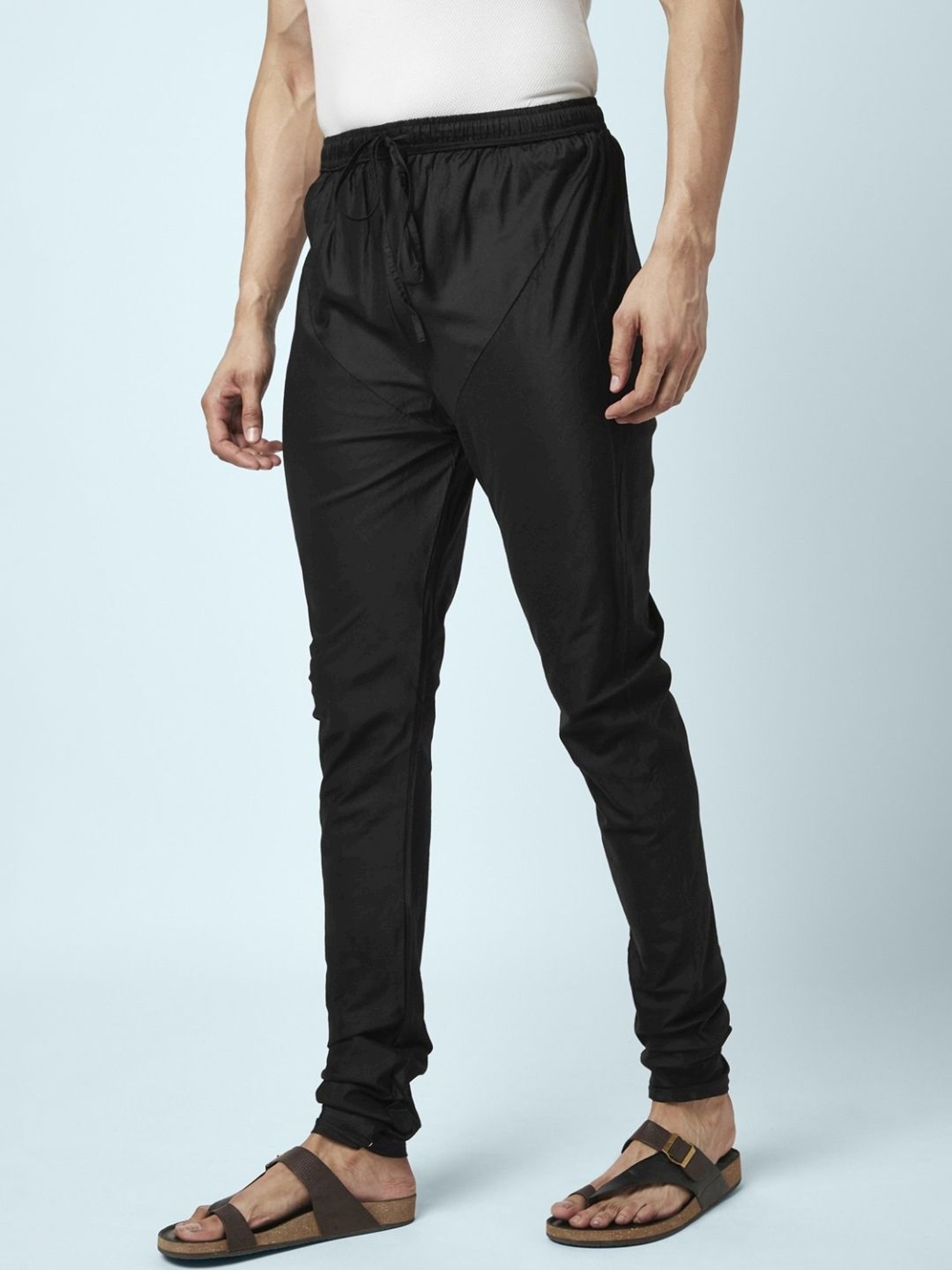 Declaim your minimalist mantras by wearing this pair of black regular fit churidars from Indus Route by Pantaloons. Tailored to sartorial perfection from premium quality fabric, it assures a soft and soothing touch against the skin.