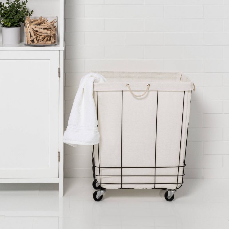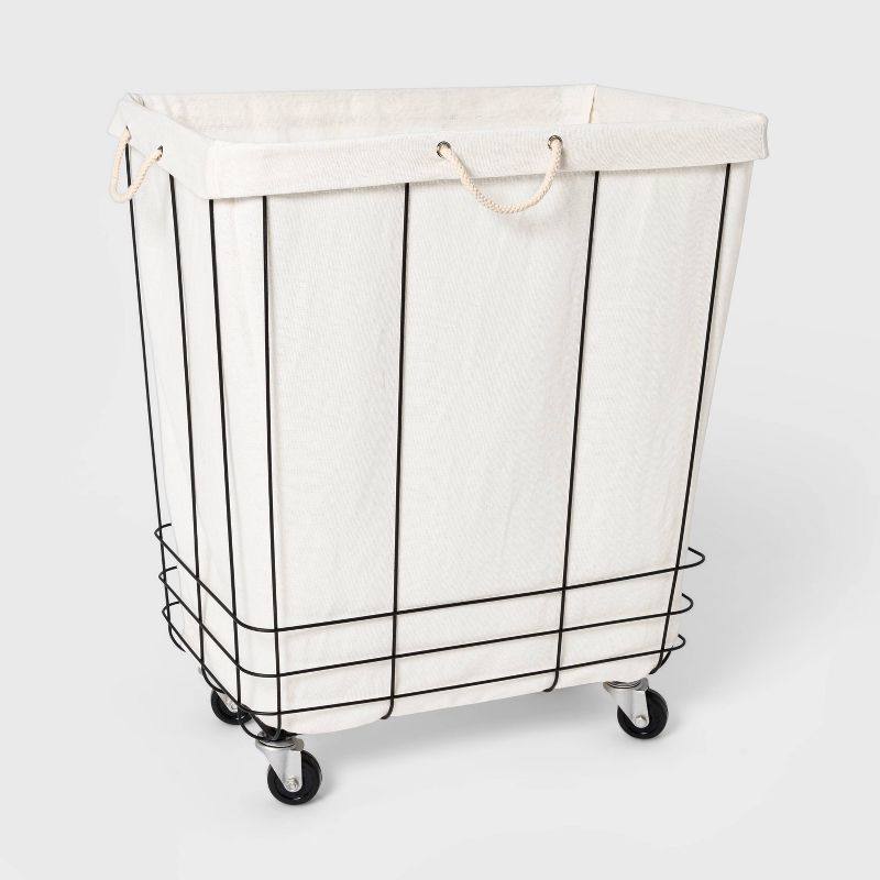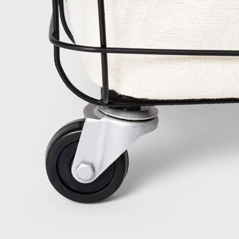 Make laundry day as easy as can be with the Industrial Rolling Laundry Basket from Thresholdâ„¢. Set on a metal frame, this laundry sorter features a spacious laundry bag with an open-top design to easily organize dirty laundry. Designed with four casters for easy maneuverability, it features one handle at each side of the laundry bag for effortless carrying of loads to bring convenience to organizing laundry.