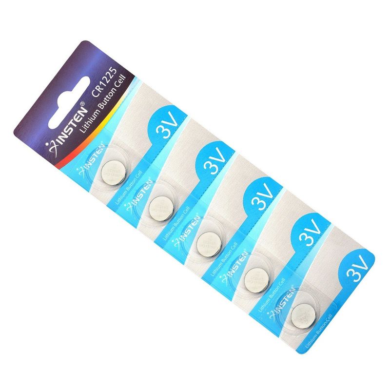 • Model: CR1225. Chemistry: Lithium. Voltage: 3V. Quantity: 5.