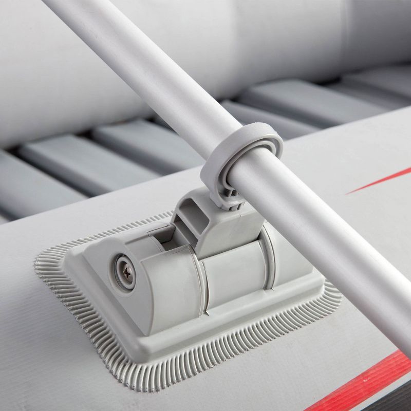 The 4 Boston valves allow for quick-fill and fast deflation. It has an inflatable keel for improved control and handling and durable rock guard lines that line the circumference of the hull above an all-around grab line. This set includes 2, 54-inch oars and oar holders.