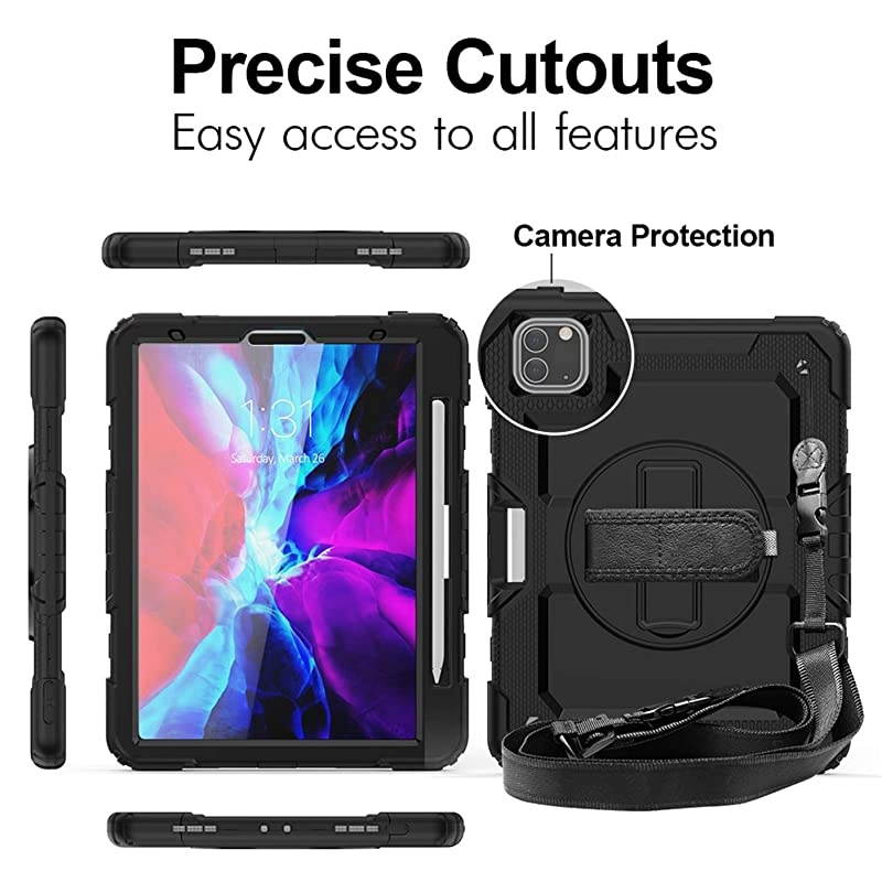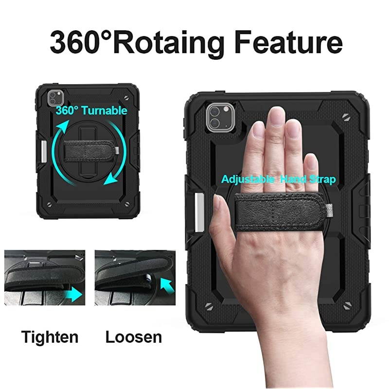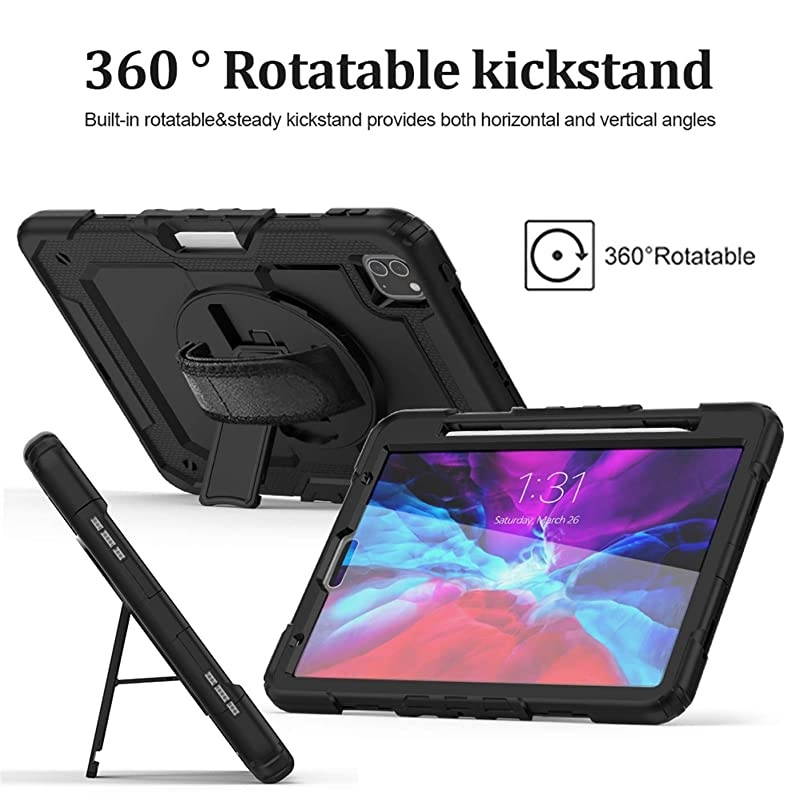***** **********Best Quality Guranteed. *****The case only compatible with 2020 iPad Pro 11 Inch Tablet 2nd Generation, (Model: A2228, A2068, A2230, A2231), Please confirm the model carefully before purchase. *****3 in 1 construction with premium PC and shock-absorbing TPU material, high-strength anti-drop and anti-shock, can maximize the protection of your iPad from damage. *****Sturdy 360 degrees swivel foldable kickstand, easy to type, watch videos, meetings, construction and outdoor work. *****Equipped with an adjustable hand strap, you can hold the iPad firmly with one hand without affecting your work at all. *****Easy to put on and take off. The precise incision does not affect your access to other functions at all. (Cameras, Speaker, Ports and Buttons)