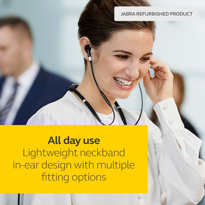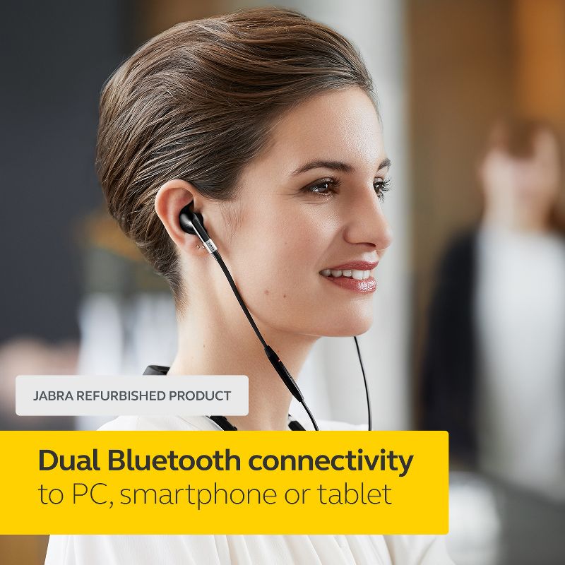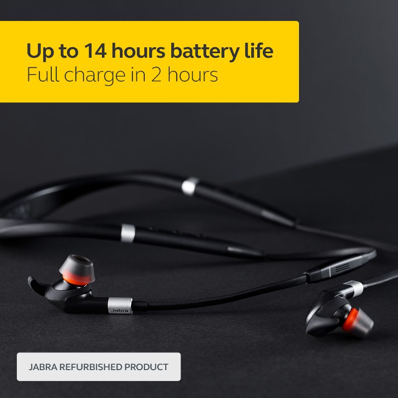 This product has been professionally restored to working order by Jabra. It has been inspected, cleaned, and repaired to meet our specifications and is in excellent condition*. Manufacturer refurbished for your confidence and safety, each product is: Fully tested for power, charging, pairing, speaker, microphone, volume, and tactile Thoroughly inspected and cleaned; Repackaged for resale in shipping friendly packaging including accessories Backed by our 180 day warranty. *The product could have minor blemishes. Skype for Business certified three-microphone technology creates a unique talk-zone, making sure you’re heard, while other nearby voices are filtered out. With an around-the-neck, wireless earbud design. Focus with Active Noise Cancellation, and an integrated busylight lets colleagues know you are not to be disturbed Evolve 75e fully charges in just two hours, and that best-in-class charge provides up to 14 hours of battery life.