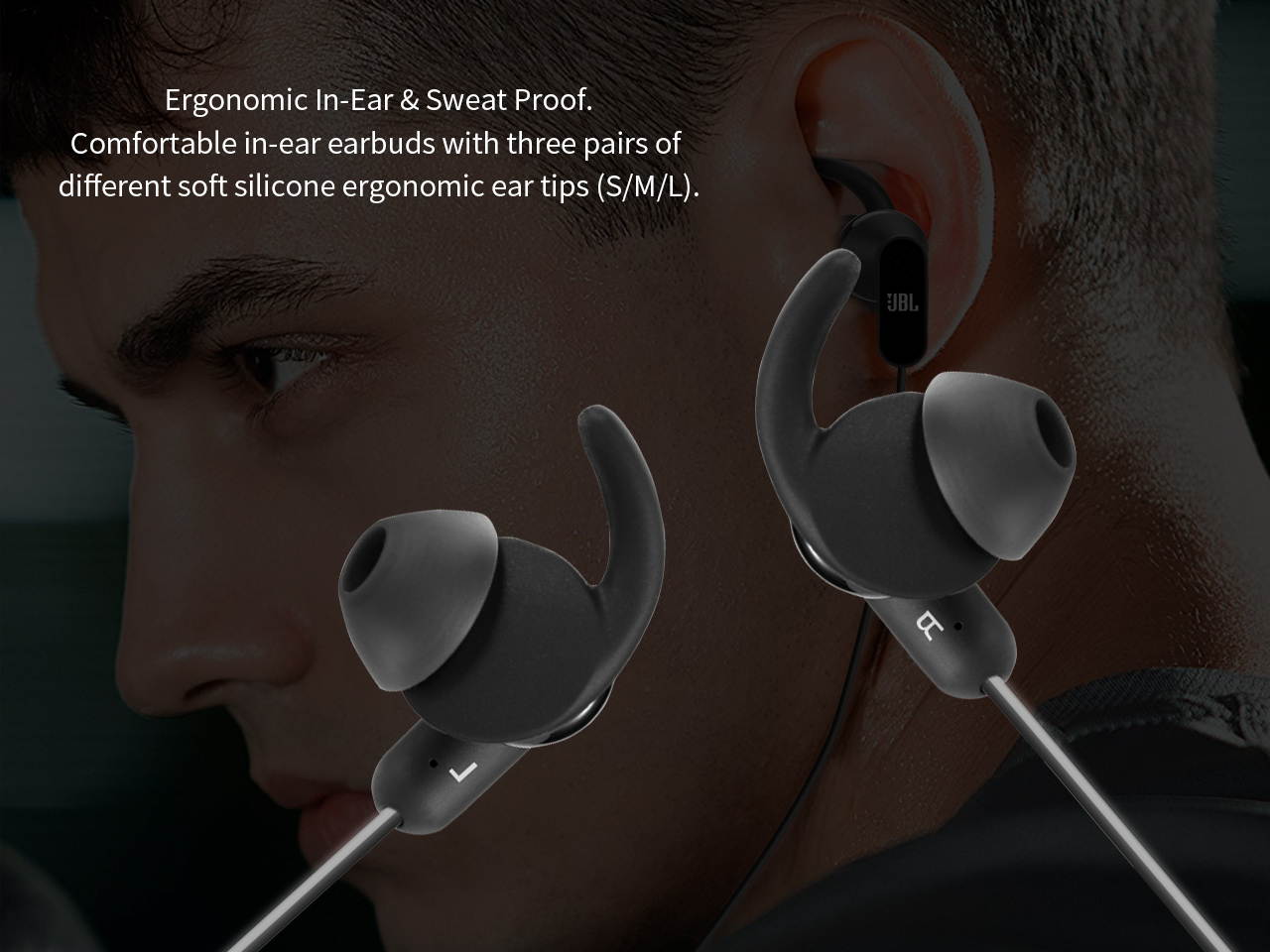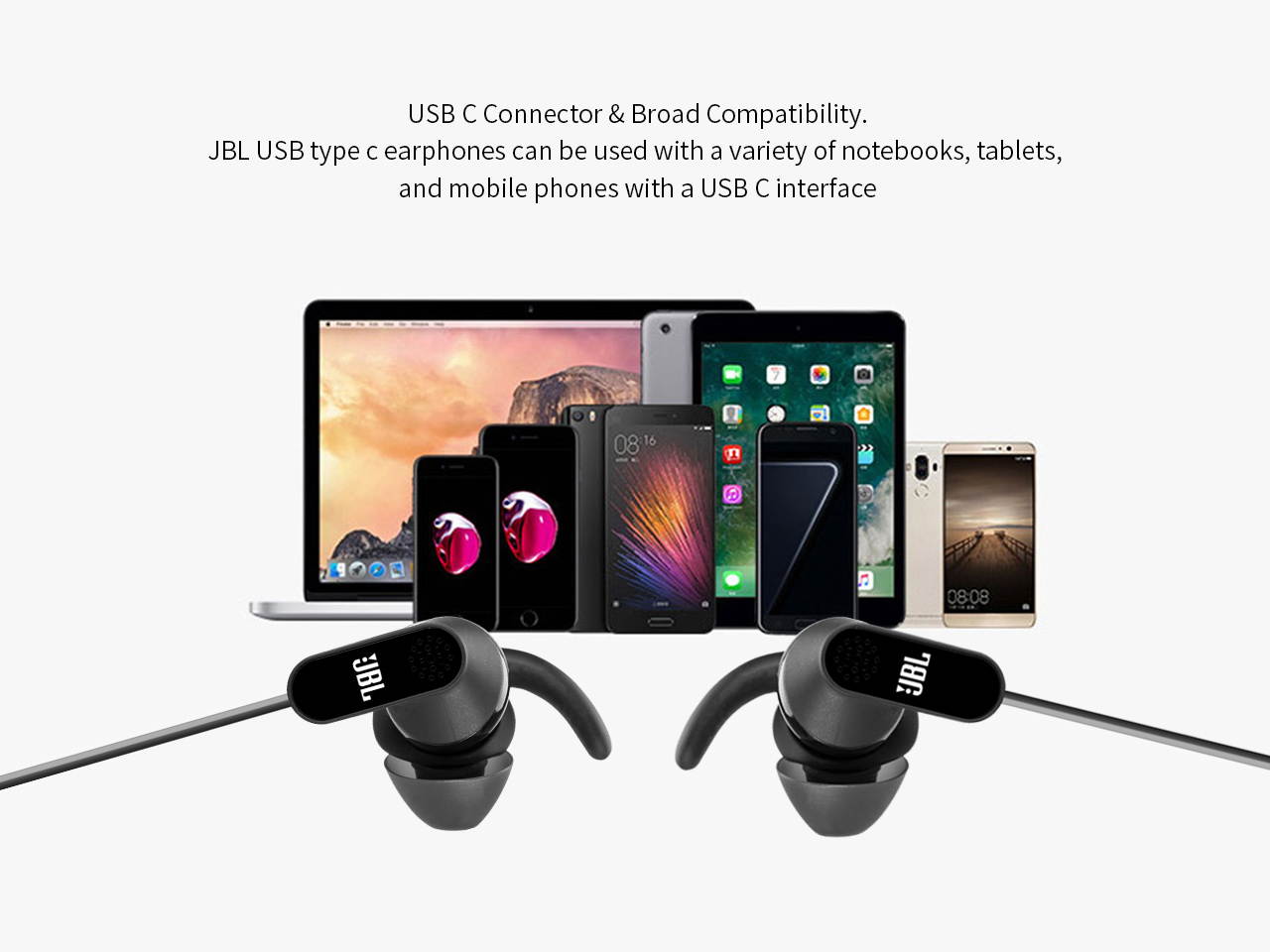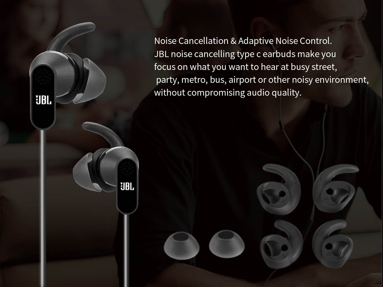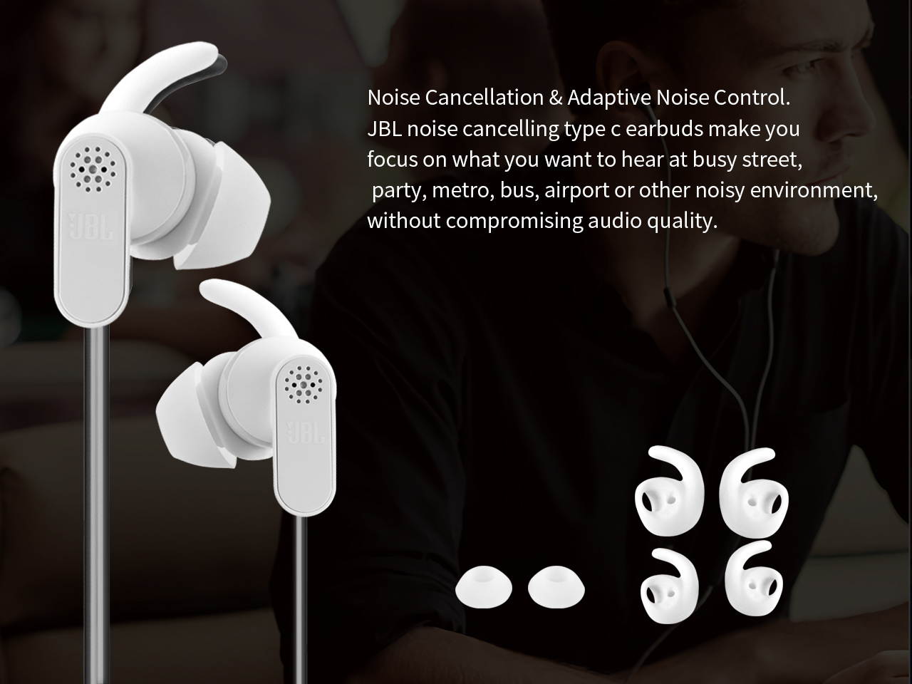 JBL earphones even let you adjust noise levels so that you can hear as much, or as little, of your surroundings as you like. And they’re made to take anywhere, with USB-C support, an sweat-proof, tangle-free reflective cables, ergonomic ear-tips and in-line microphone.