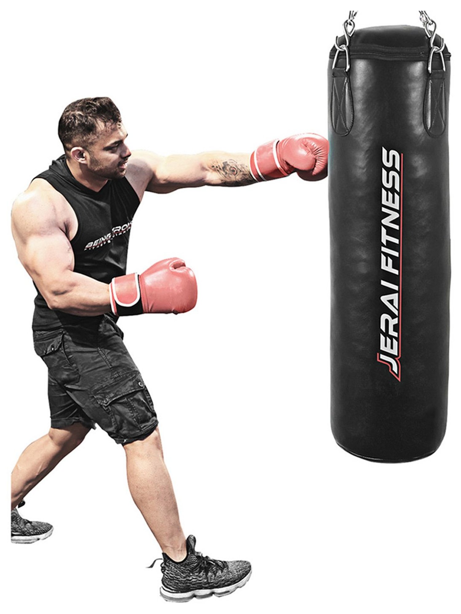 This Jerai Fitness punching bag is a stuffed or inflated leather bag that is usually suspended so that it can be punched or kicked for practice or exercise. This black essential has a weight and height of 26700 gm and 102 cm respectively. It has a diameter of 330 mm. It comes with a 1-year comprehensive warranty. Raise a ticket for installation: jerai.service94@gmail.com, call at 9321711293.