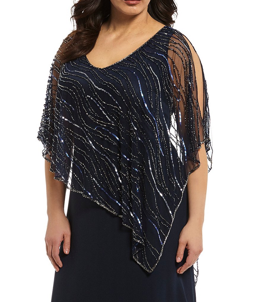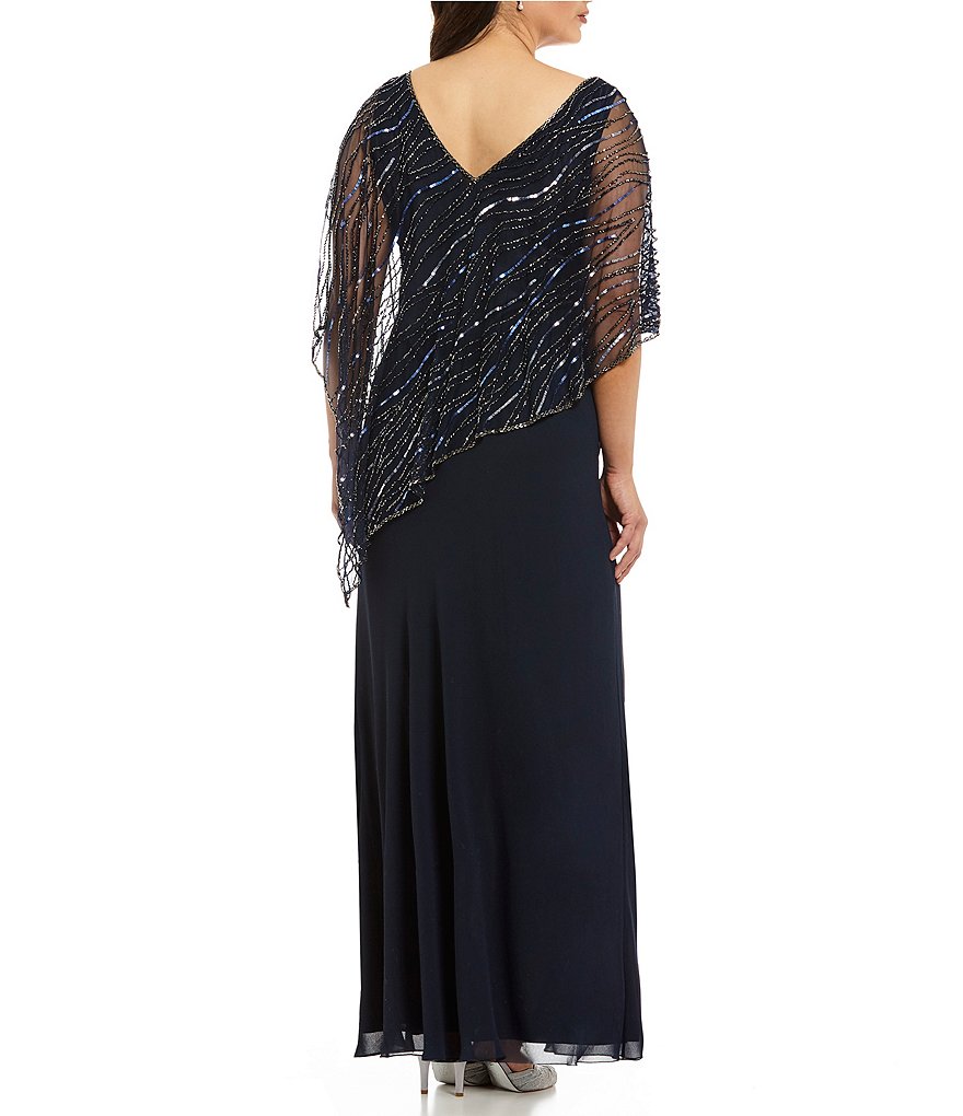 From Jkara Plus, this capelet gown features: