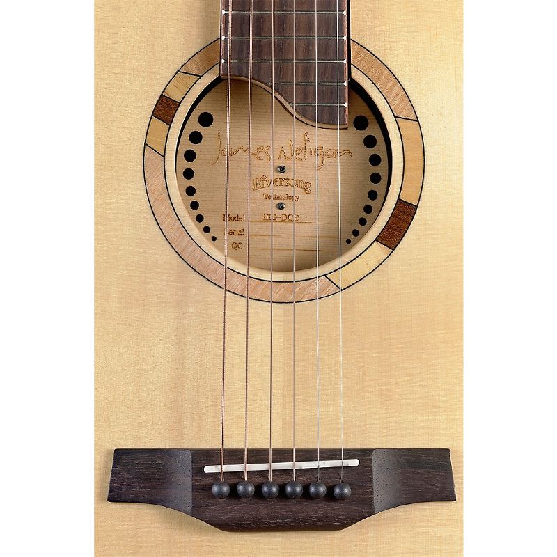 The J.N Guitars Elijah Series ELI-DCE is a dreadnought acoustic-electric guitar. It delivers a great bass sound and crystal-sharp high notes, with great projection. The ELI-DCE has a solid Engelmann spruce top and rosewood back and sides. It is equipped with a Fishman under saddle pickup. The onboard Fishman ISYS-301 equalizer has a chromatic tuner, volume, bass and treble control, plus a phase switch to help eliminate feedback.Like all Elijah Series acoustics, the ELI-DCE features the "Necknology” system developed by award-winning luthier Mike Miltmore from Riversong Guitars. Necknology necks are highly adjustable and extend through the body. This eliminates the tension on the top, offering players better sound, response and action.