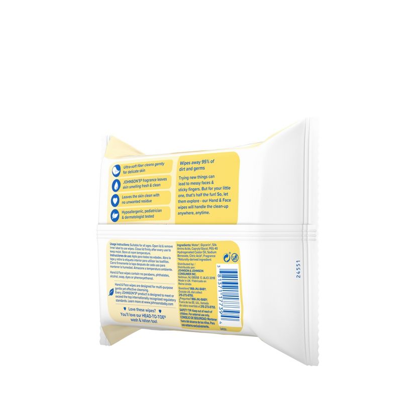 Baby's hands and face can get messy. That's why Johnson's baby cleansing wipes were designed to gently and effectively remove 95% of dirt and germs from baby's delicate hands and face anywhere, anytime. Made with our NO MORE TEARS formula, these disposable baby wipes are alcohol and paraben-free and are as gentle to baby's eyes as pure water. Great for on-the-go, these travel baby wipes come in a handy re-sealable package for quick and easy cleansing.