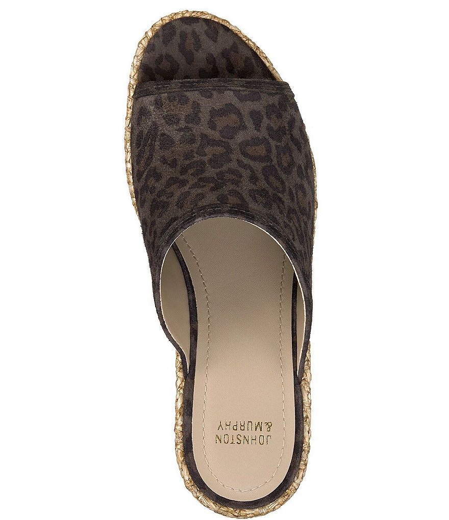 From Johnston & Murphy, the Addy Espadrille Platform Wedge Slides feature: