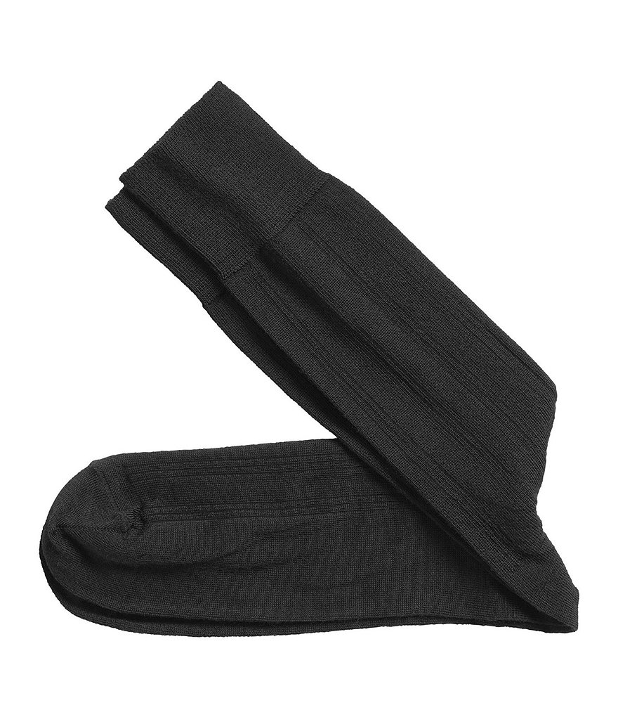 A soft, lofty men's ribbed dress sock from Johnston & Murphy, with subtle ribbed detail, in a premium blend of merino wool/nylon/spandex.