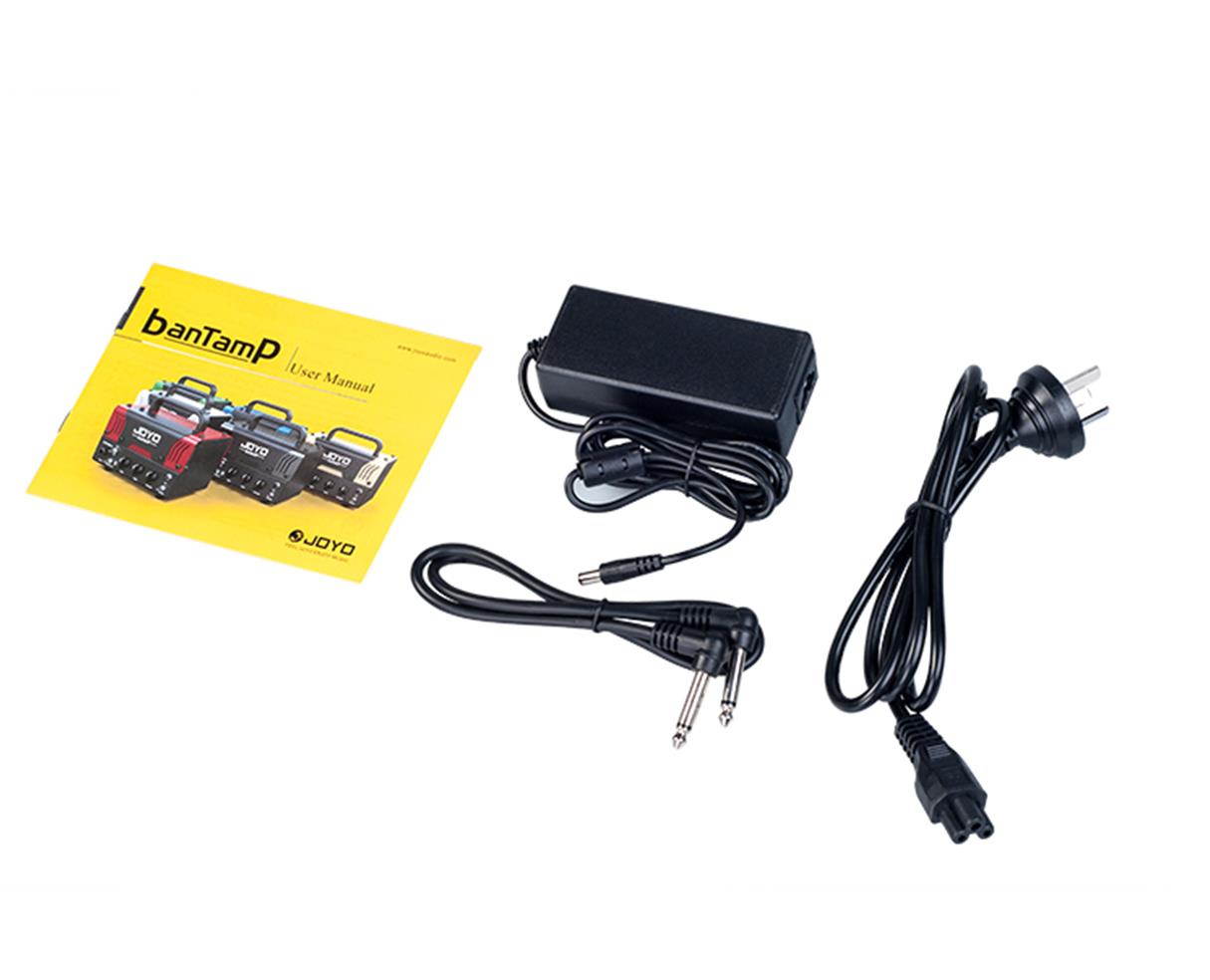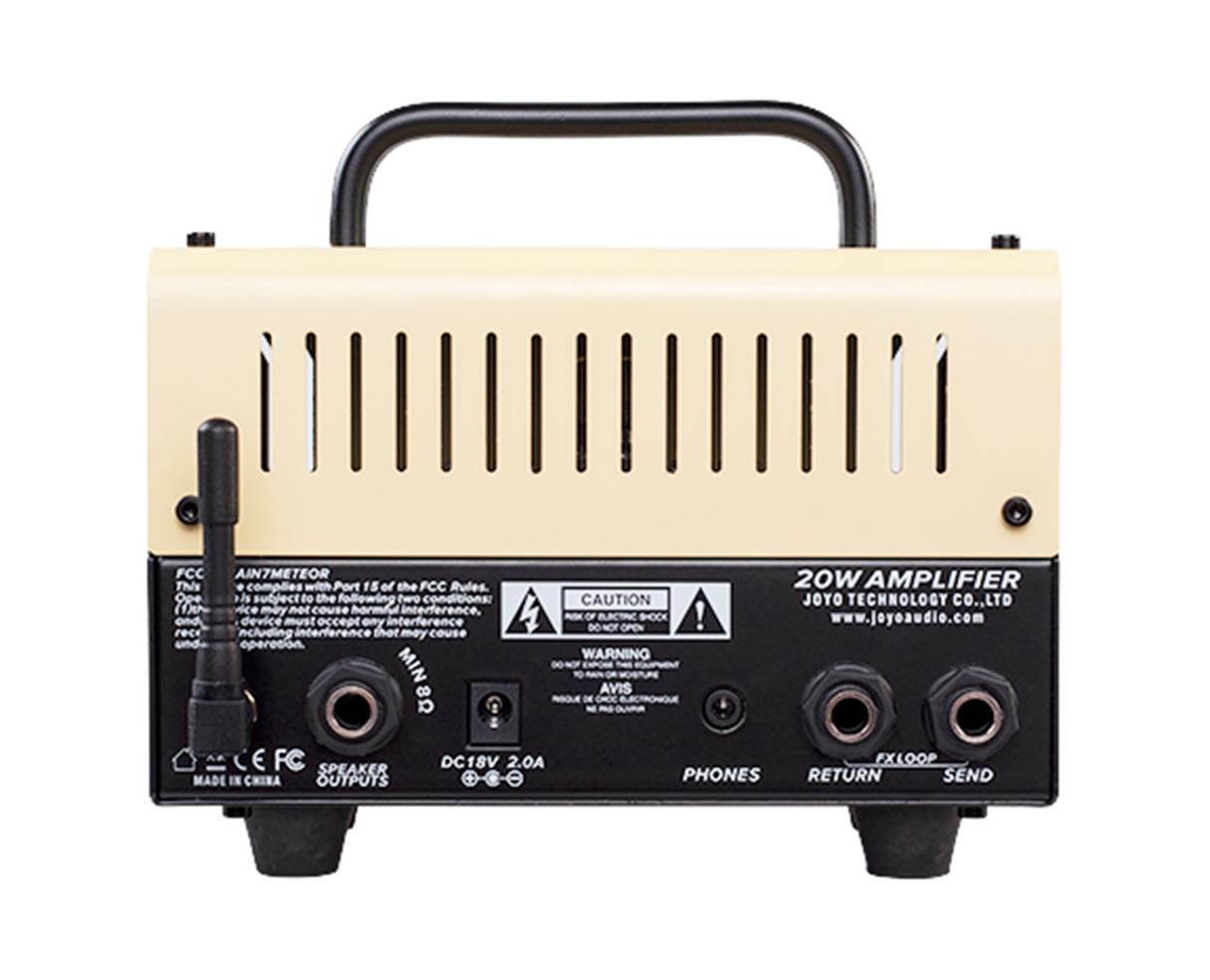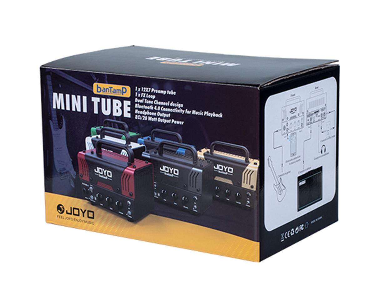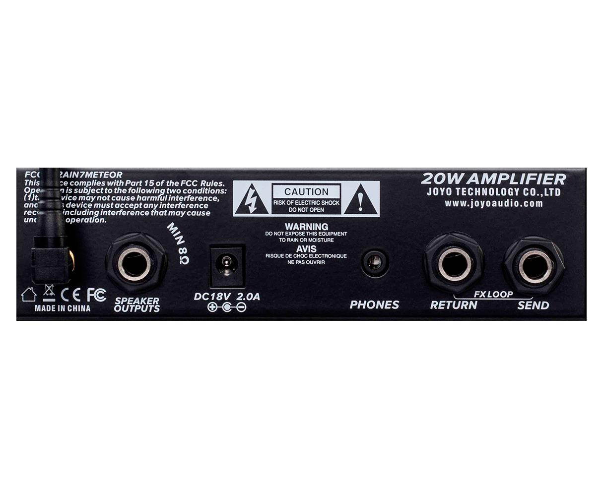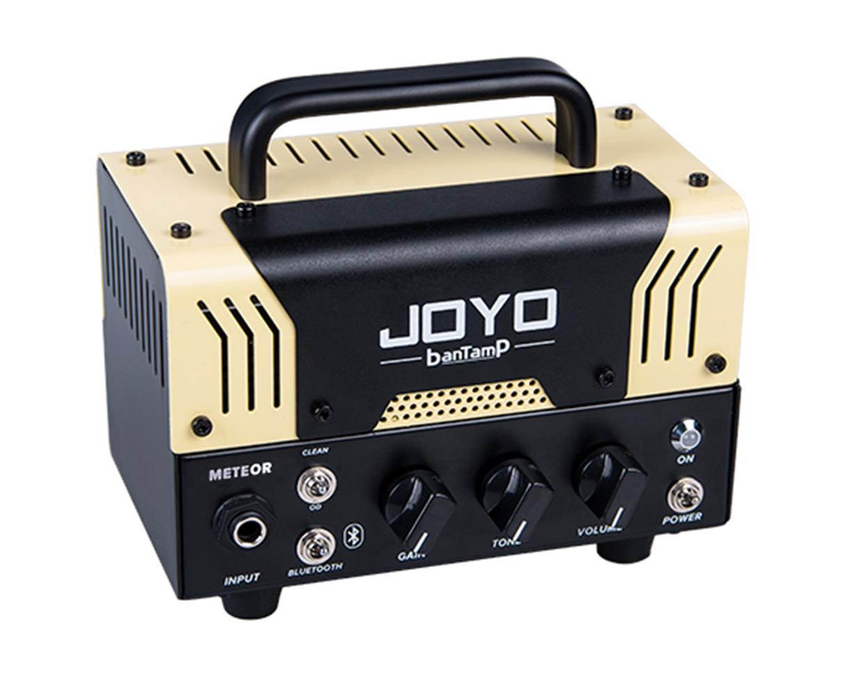 Joyo Meteor BantamP 20 Watt Mini Tube Amp The MeteOR from Joyo’s BantamP series is a very compact and portable 20 Watt head. It gives you a modern high gain sound with a lot of dirt and bite. Based on a more modern British approach to heavy sounds, it excels in a variety of genres. It was the punk and indie scene that introduced those sounds to the world, but today, due to an increase in gain, also the metal players enjoy this alternative British flavor. The Meteor can give you those sounds in a tiny package and deliver a hefty punch of gain and bottom end. The amp operates with a single 12AX7 tube in the preamp and uses a solid state power amp. The FX loop enables you to put your time based effects (or Phasers, Flangers and Choruses) behind the drive section and keep the effects sharp and not prevent them from being too muddy. The amp also has a CLEAN channel that can take pedals really well, which makes it flexible and a great little companion for many situations where your “big” head is just not sensible. The amp has a speaker out rated at 8O, but can also be operated at 16O with less power. Careful, the amp is small, but loud… its 20 Watts can be quite a handful. If you want to practice quietly, use the built in headphone out with speaker emulation. The icing on the cake is the BLUETOOTH connectivity. Easily connect with your BLUETOOTH enabled device and play music through the BantamP. This is great to practice with PlayAlongs or to learn songs. Joyo Meteor BantamP 20 Watt Mini Tube Amp Features: Preamp circuit: JFET+ 1 x 12AX7 Power amp: CLASS D Channel mode: CLEAN / OD Amp power: 20W(RMS) Aux in function: Bluetooth music playing Bluetooth version: 4.0 Input AC 110-240V 50/60Hz OUTPUT DC18V/2.0A