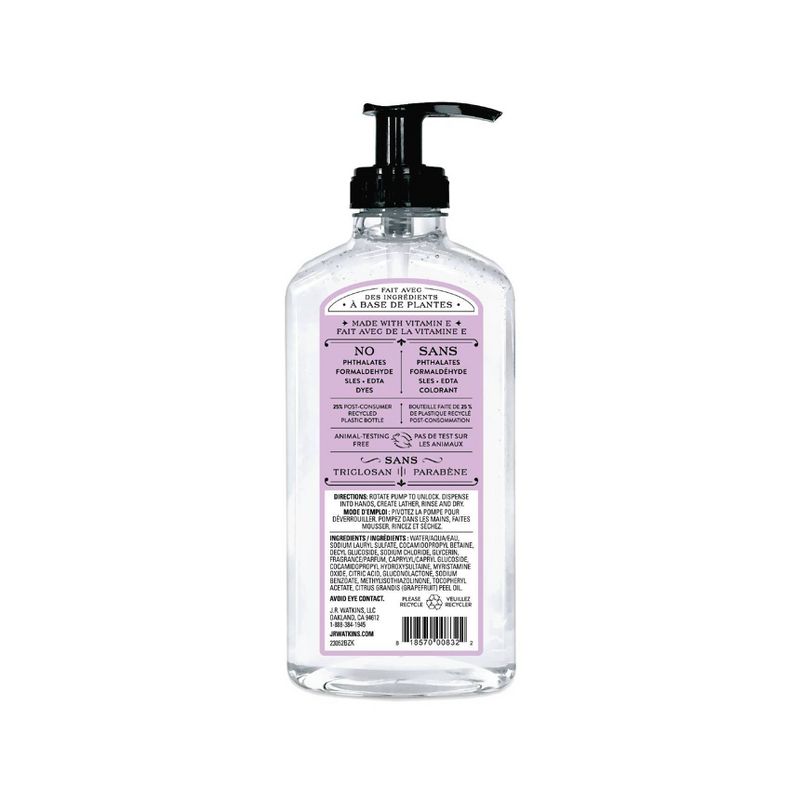 J.R. Watkins Lavendar scented liquid hand soap is made with natural ingredients, so it's gentle on your hands. One pump provides a rich lather and refreshing, lavendar scent. 99% natural and free from parabens, phthalates, glycols and dyes, wash away dirt and grime with gentle plant-based ingredients. Always non-toxic. Never tested on animals. How to use: Run your hands under warm water. Pump desired amount onto hands and lather for 30 seconds. Rinse and pat dry.